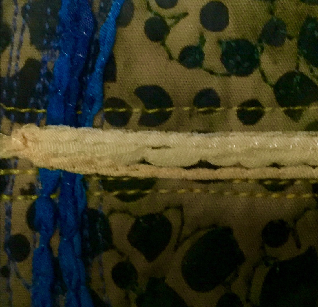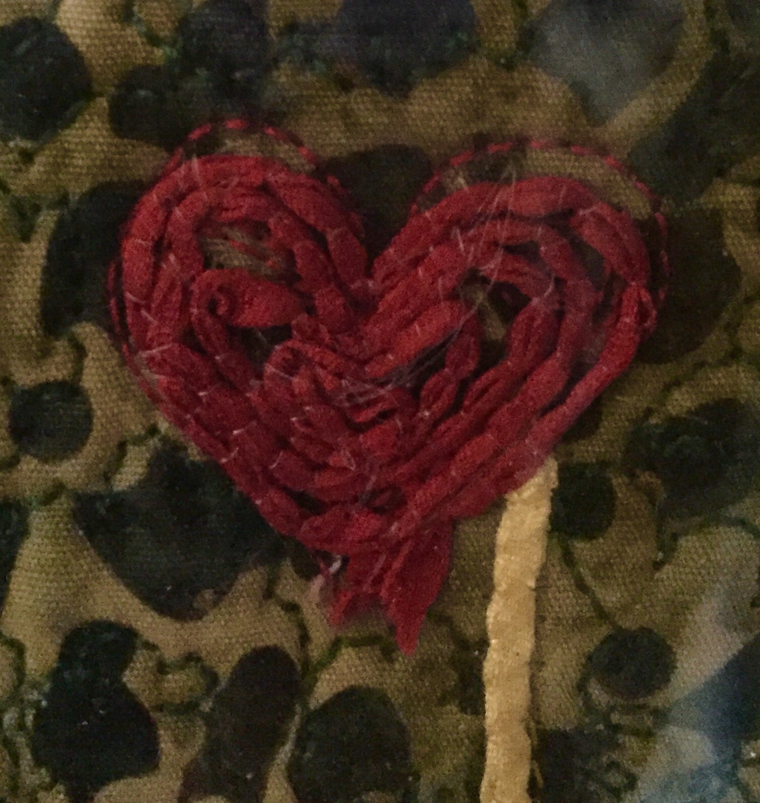 Using MonoPoly from Superior Threads in the top of my machine and ribbon in the bobbin (yellow for roadways, 2 shades of blue for water, and red for the heart to symbolize home ❤️), I stitched along my markings.