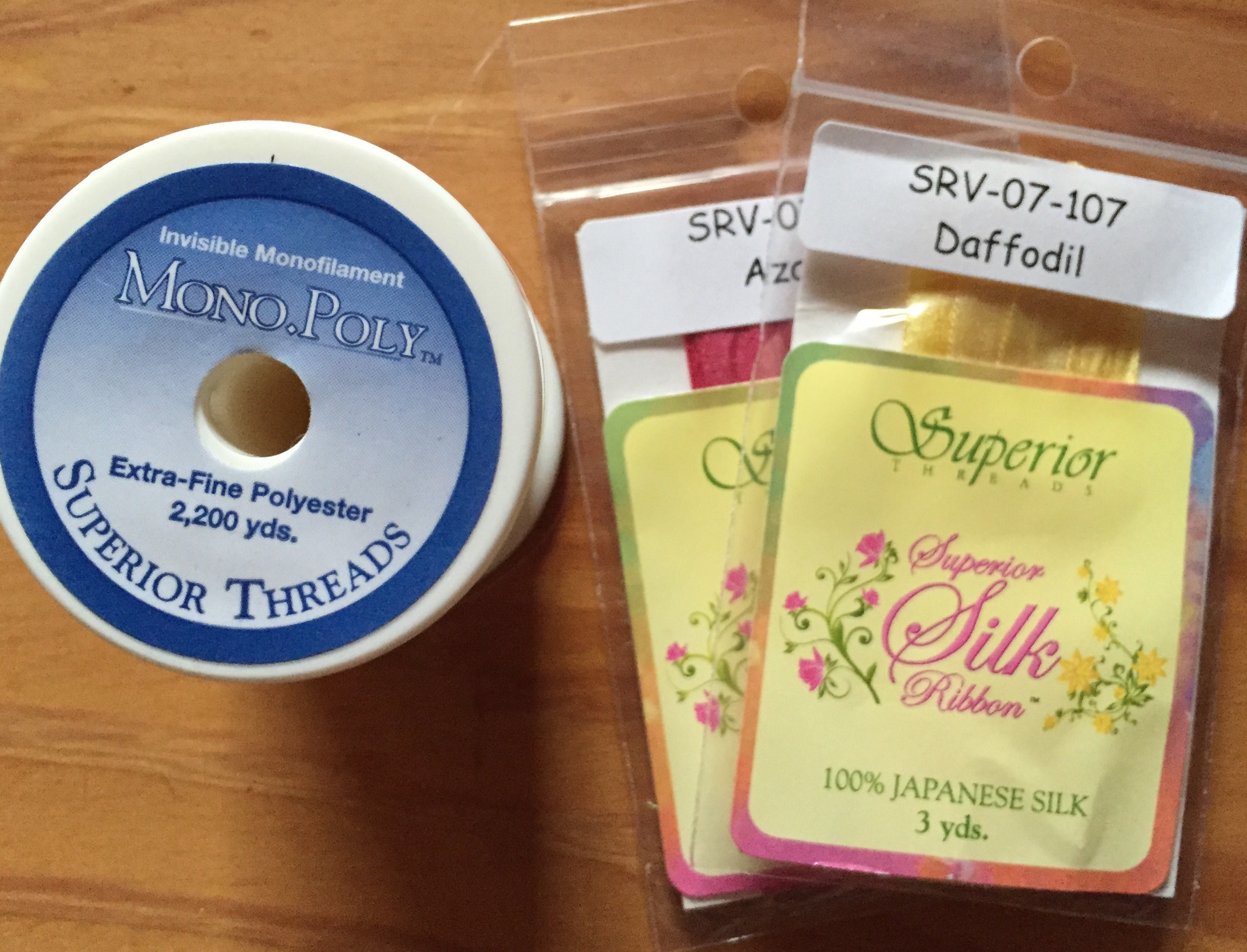 One Christmas, I stared at a fat quarter of green batik fabric and realized that it very much resembled our tree-laden part of Connecticut.  I had recently begun playing with narrow silk ribbon in my bobbin and thought that it would be fun to stitch out the roads on which we love to ride our Harley, the nearby lakes, and something to symbolize home.