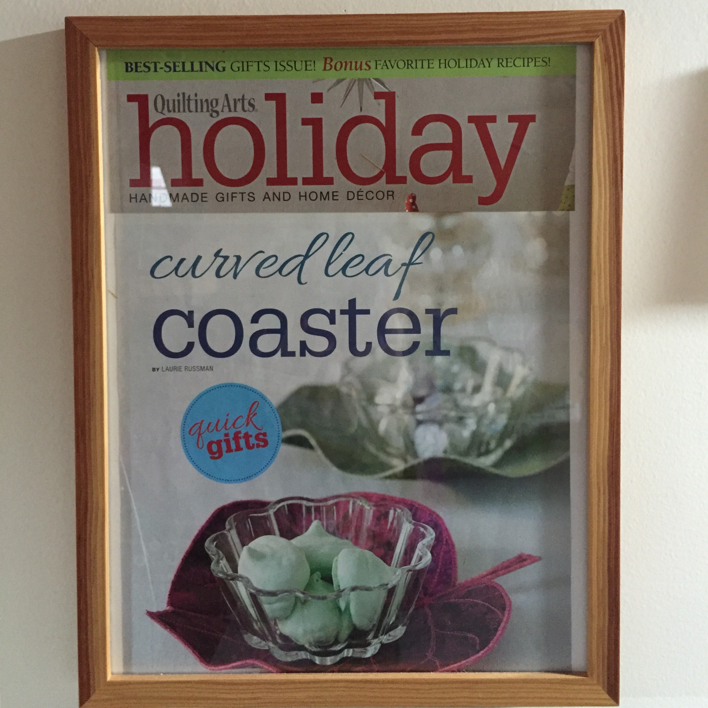 Then there is Quilting Arts magazine…I framed the article I wrote in last year’s Holiday special edition to celebrate a goal met and a reminder of all those future goals (who else has QA tv on their bucket list?!). It is also a tribute to the wonderful team that edits the magazine now…and a thank you to the founder, Pokey Bolton. Pokey, if you hadn’t created Quilting Arts, many of us would never have heard of art quilting.