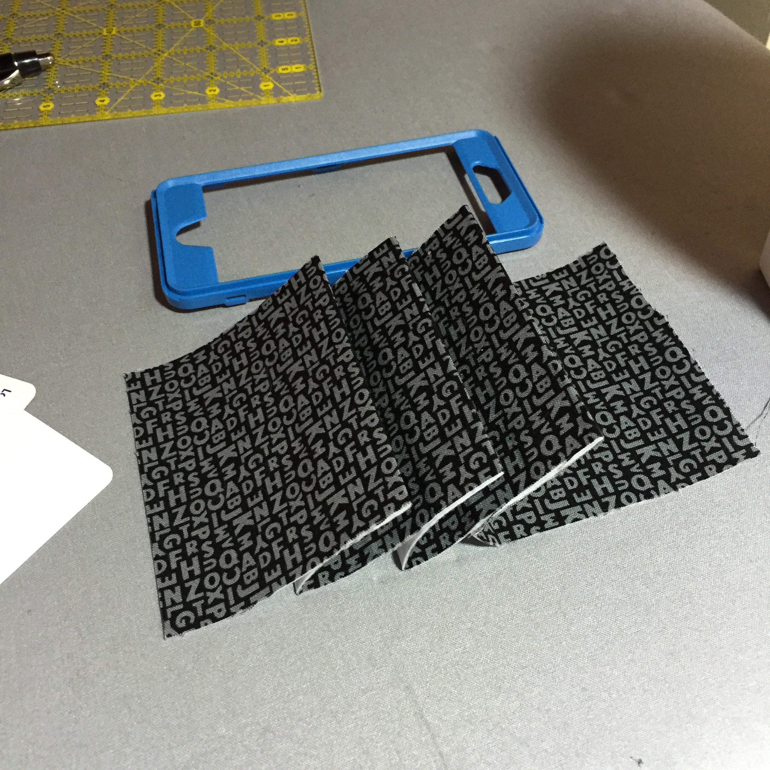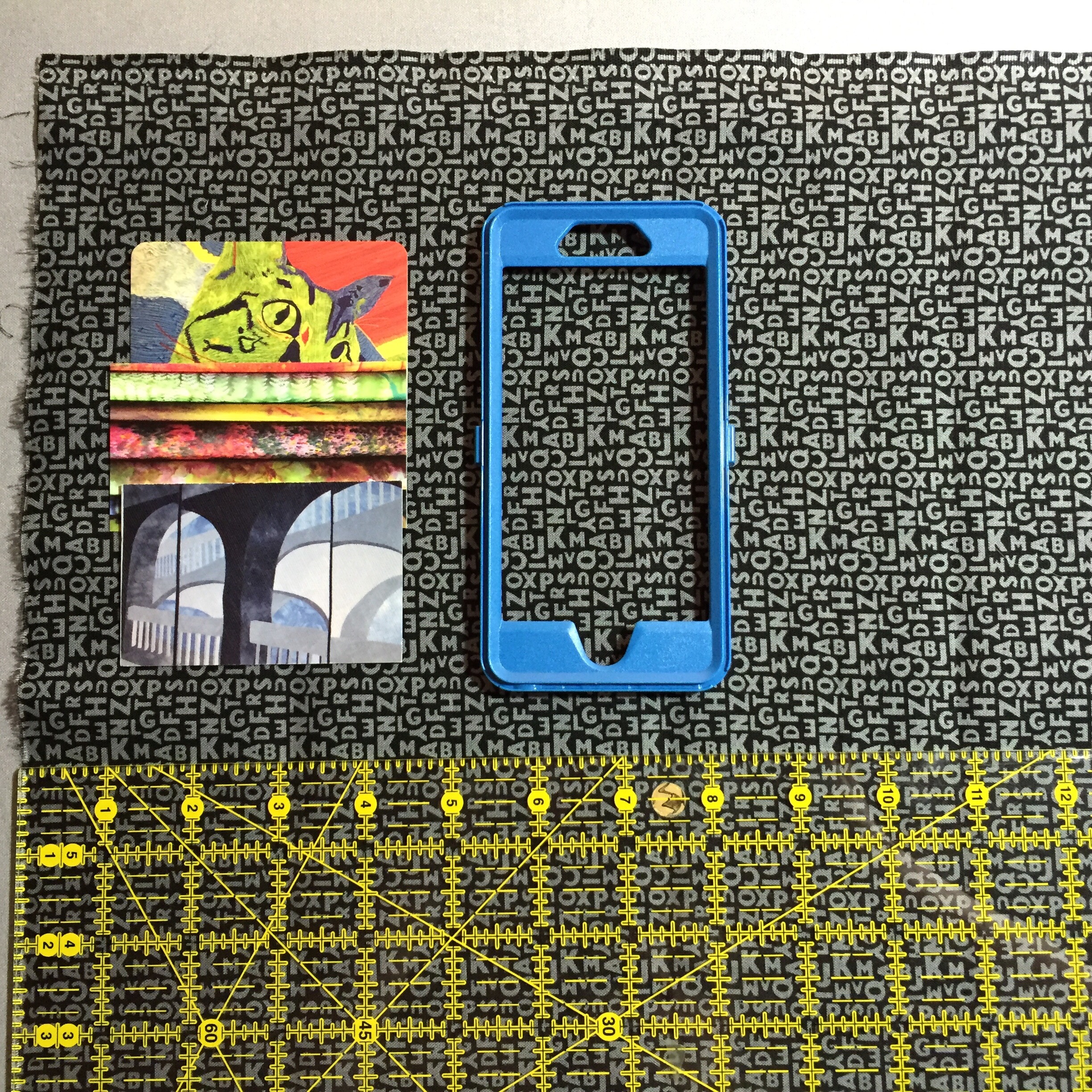 So, line up some credit cards or business cards on the left, and your phone on the right…plus enough fabric to create a pocket for the phone.