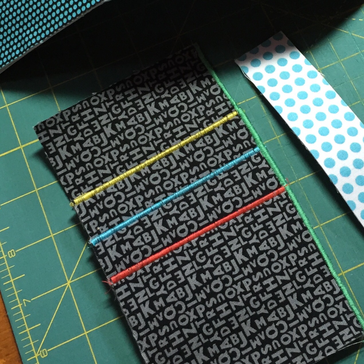 If you like these folds, they are at 3″ and 1.75″ intervals. I strongly recommend cutting a longer piece than you think you might need so that you’ll have enough to trim! Stitch each of these folds with a pretty thread…them stitch down the right side (this will be the opening to the slot for paper money). Make sure to use a large enough Topstitch needle…either 90 or 100…because you will be stitching through lots of layers!