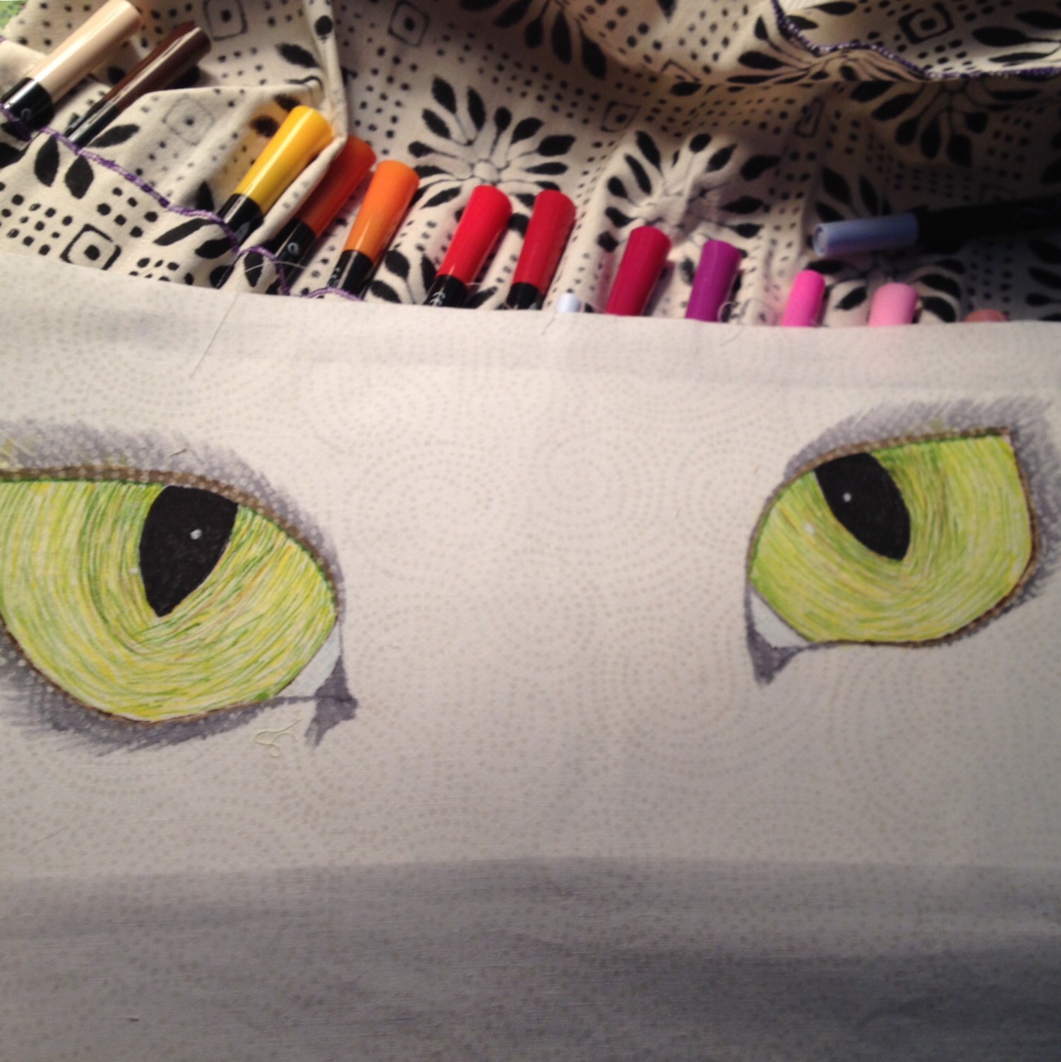 I had a great deal of fun with her lovely eyes, which I nearly always create on white/light fabric and fuse to the face: