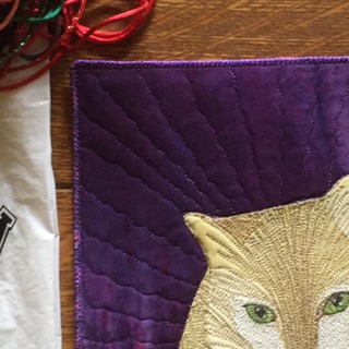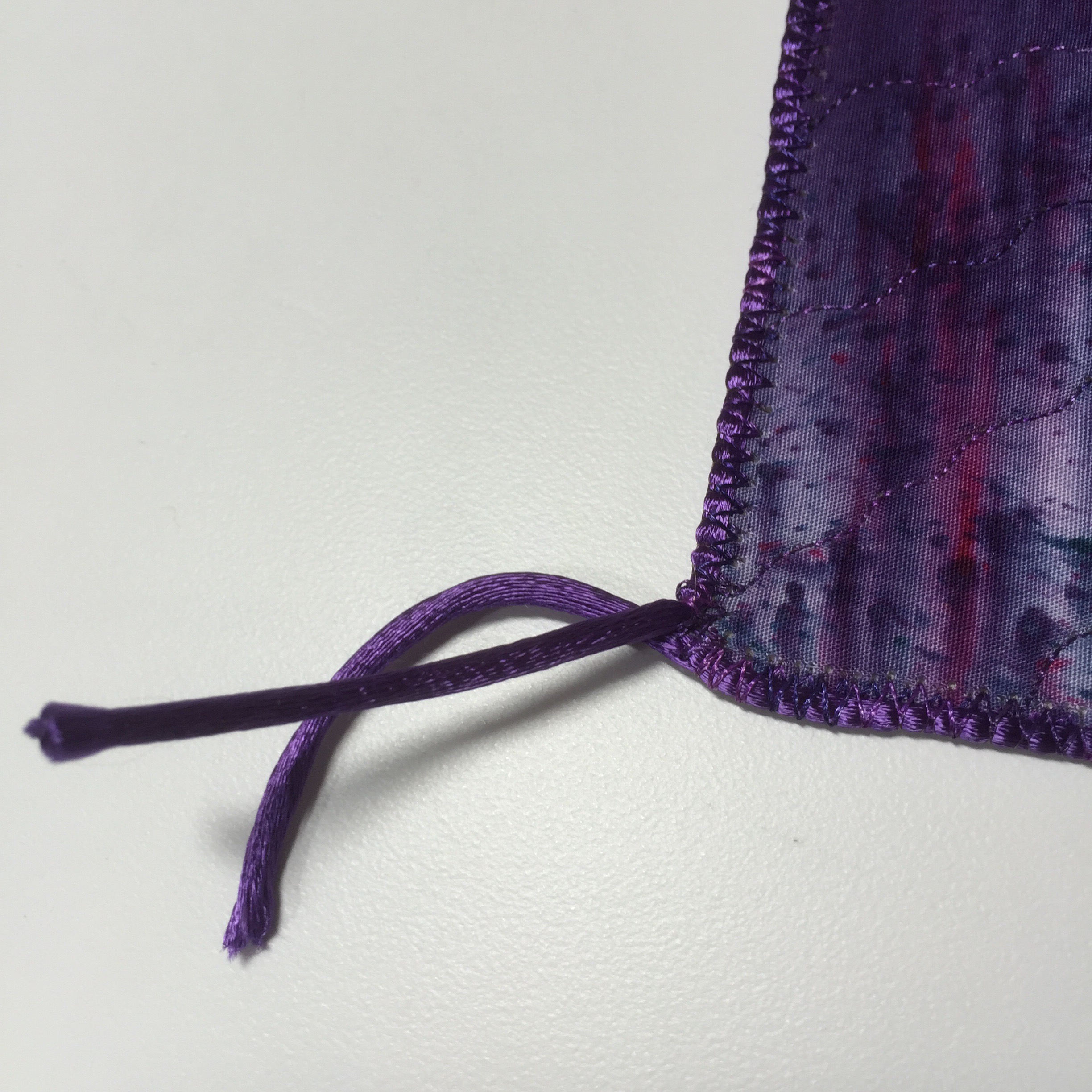 - For some pieces –think Christmas tree ornaments–this is perfect, simply tie at the base and at the ends of the cord. For a small quilt, you will probably want to trim (carefully! It can shred), then stitch all around the piece one more time, tucking those ends in as you stitch past that corner. Ta da, a very neat finished edge (and some extra color if you use variegated thread as I did here):