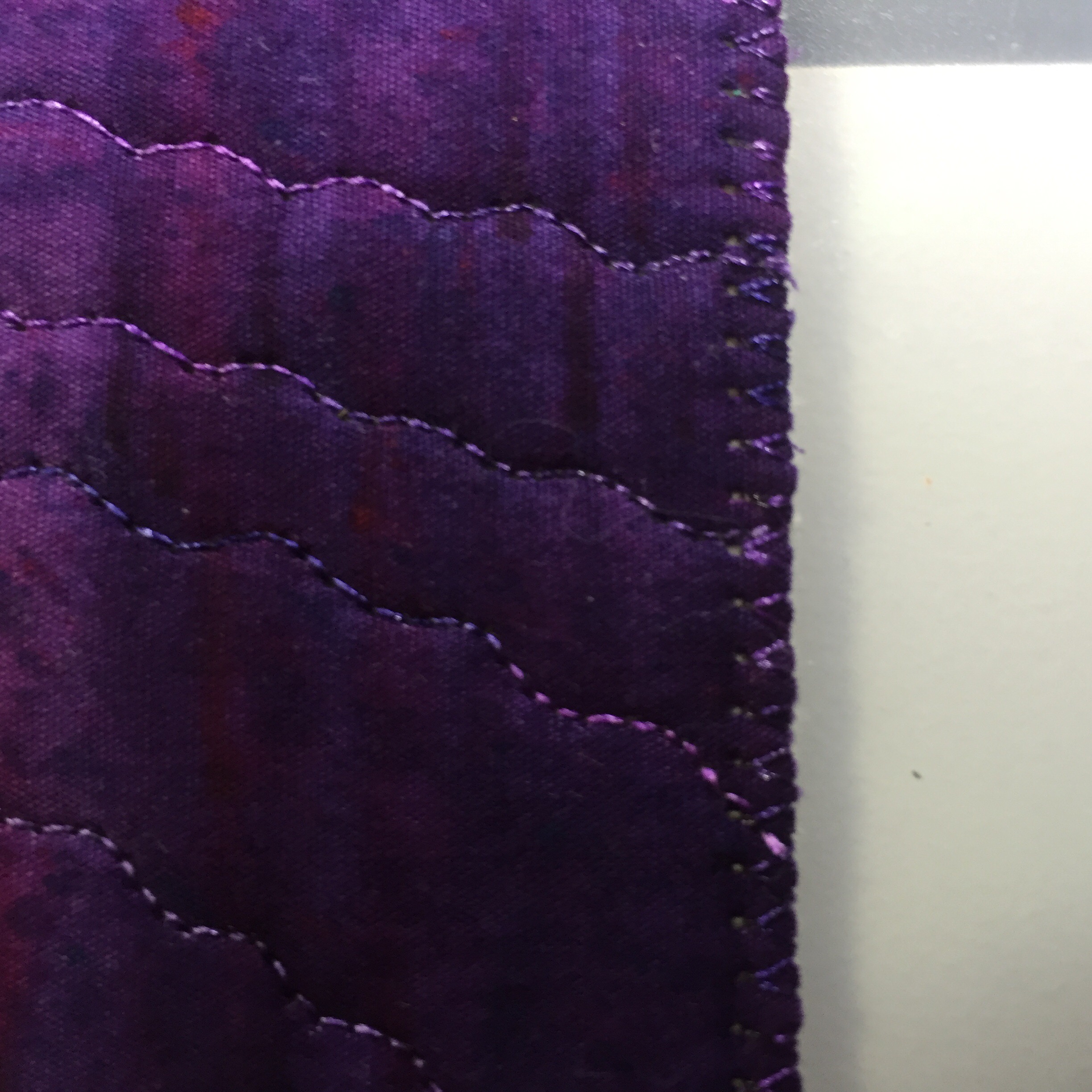 - For some pieces –think Christmas tree ornaments–this is perfect, simply tie at the base and at the ends of the cord. For a small quilt, you will probably want to trim (carefully! It can shred), then stitch all around the piece one more time, tucking those ends in as you stitch past that corner. Ta da, a very neat finished edge (and some extra color if you use variegated thread as I did here):