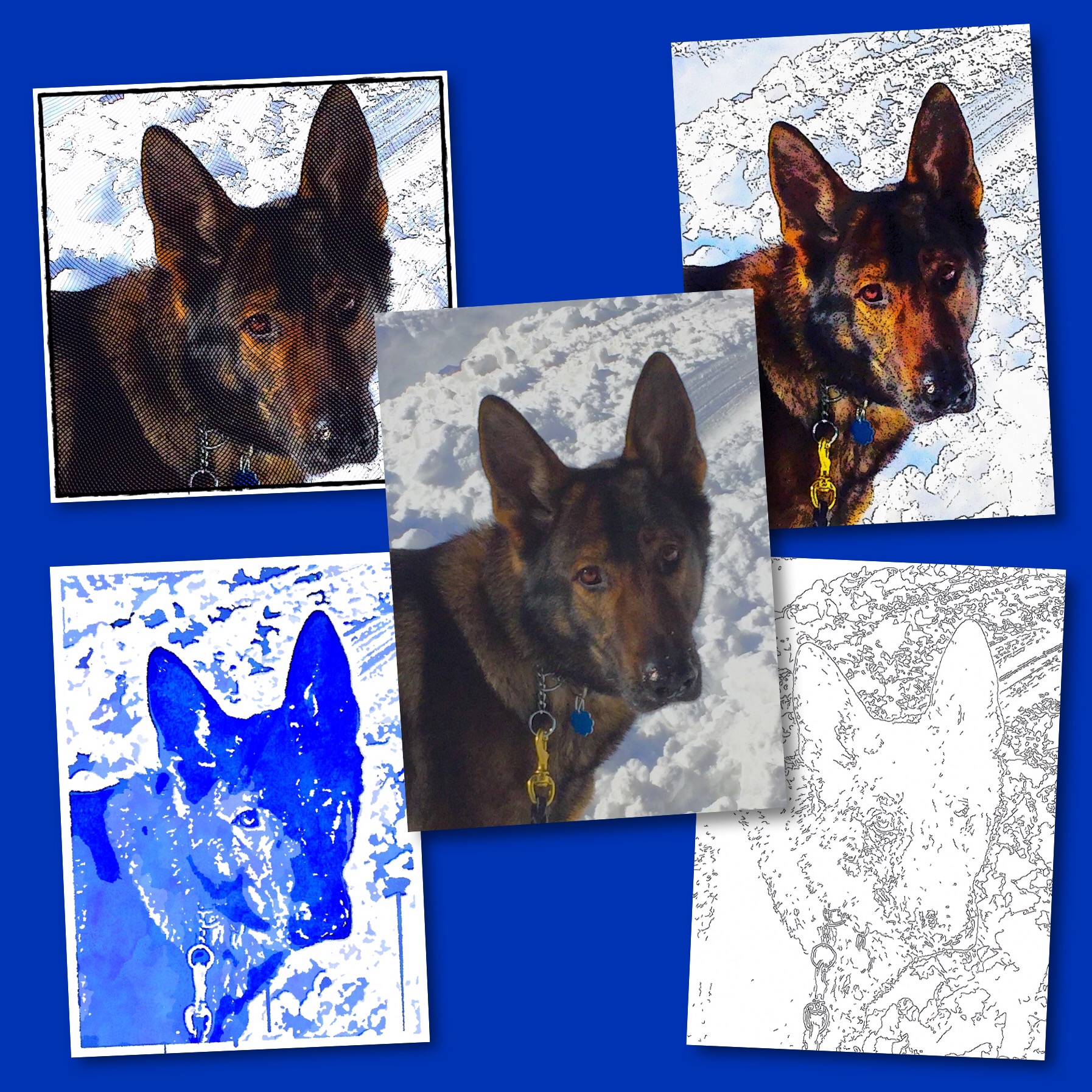 After completing my kitty piece (of course), I decided to create a portrait of a very handsome boy who frequently stays with my family (a Fidelco Guide Dog by profession). One of my favorite pictures of him was taken during a snowy walk (run) this past winter: