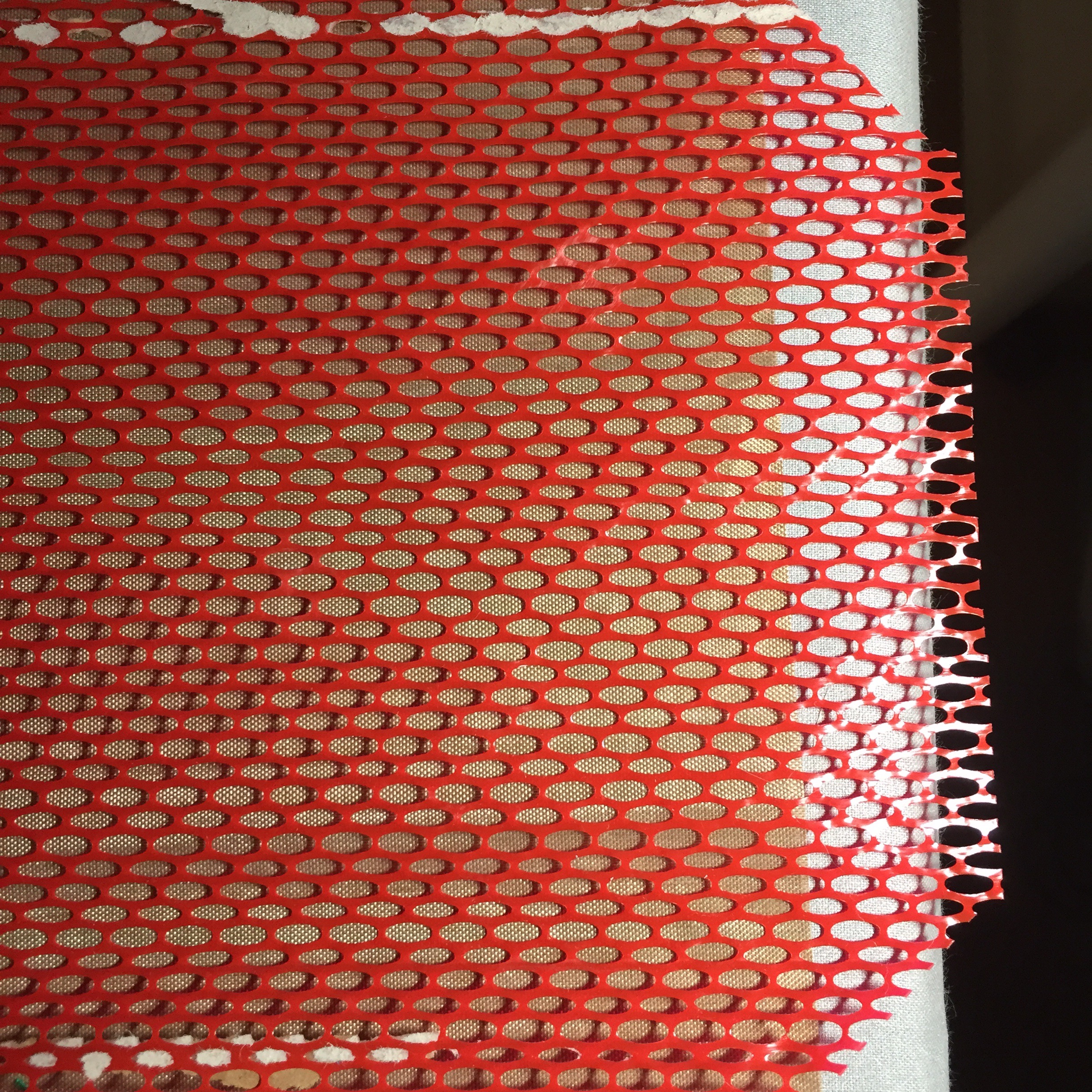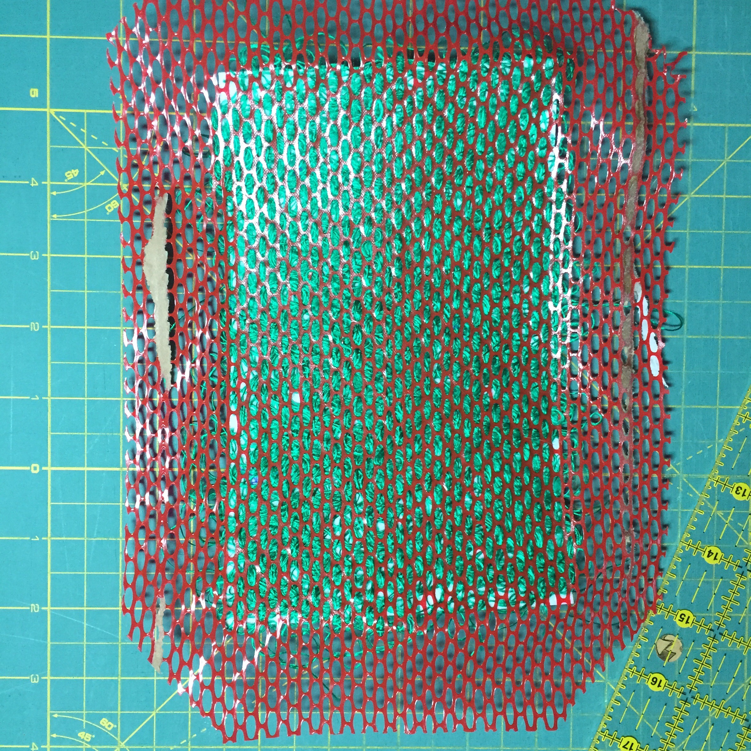 - Then, you will need some sort of tulle, netting, something to hold the threads together before stitching. Take that red plastic from the clementine box: