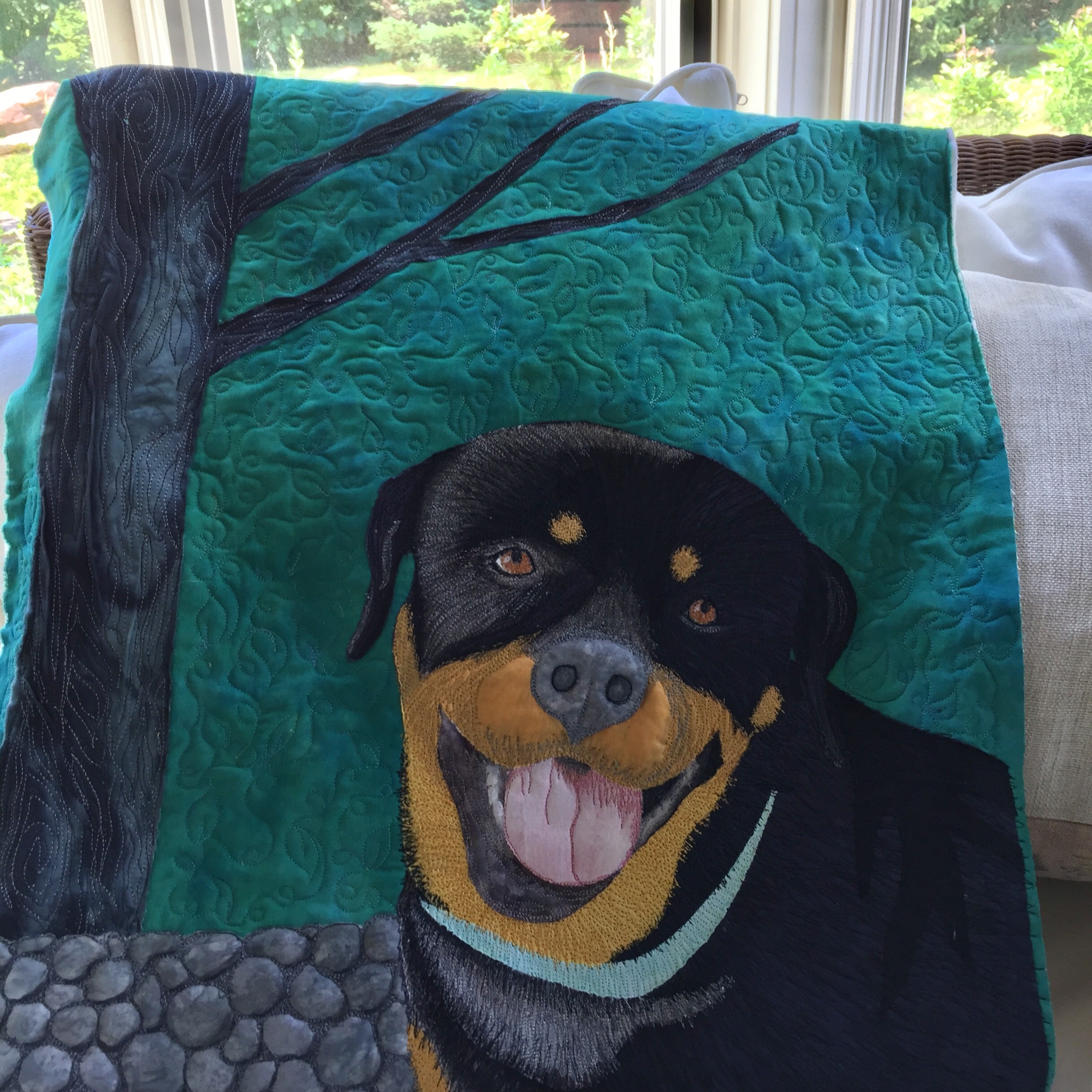 For the background quilting, a simple lasso/leaf pattern seemed to work. Whew. I really must meet the real Jake soon 😉 💜🐾🐾.