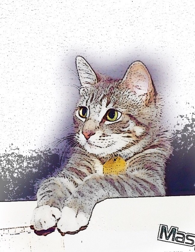 A celebration of an adorable feline named Burrito 💜…begins, as always, with a great photo. Run through one of my apps, I grab the image: