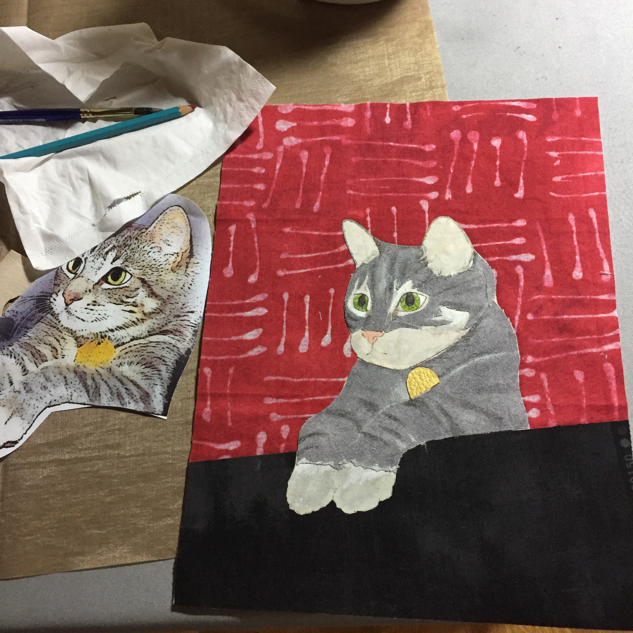 The light batik is, in fact, very light, so I can trace the eyes and nose right into the fabric before MistyFusing all: