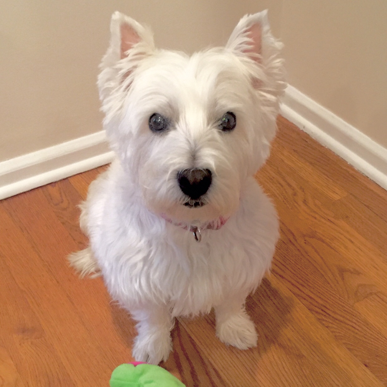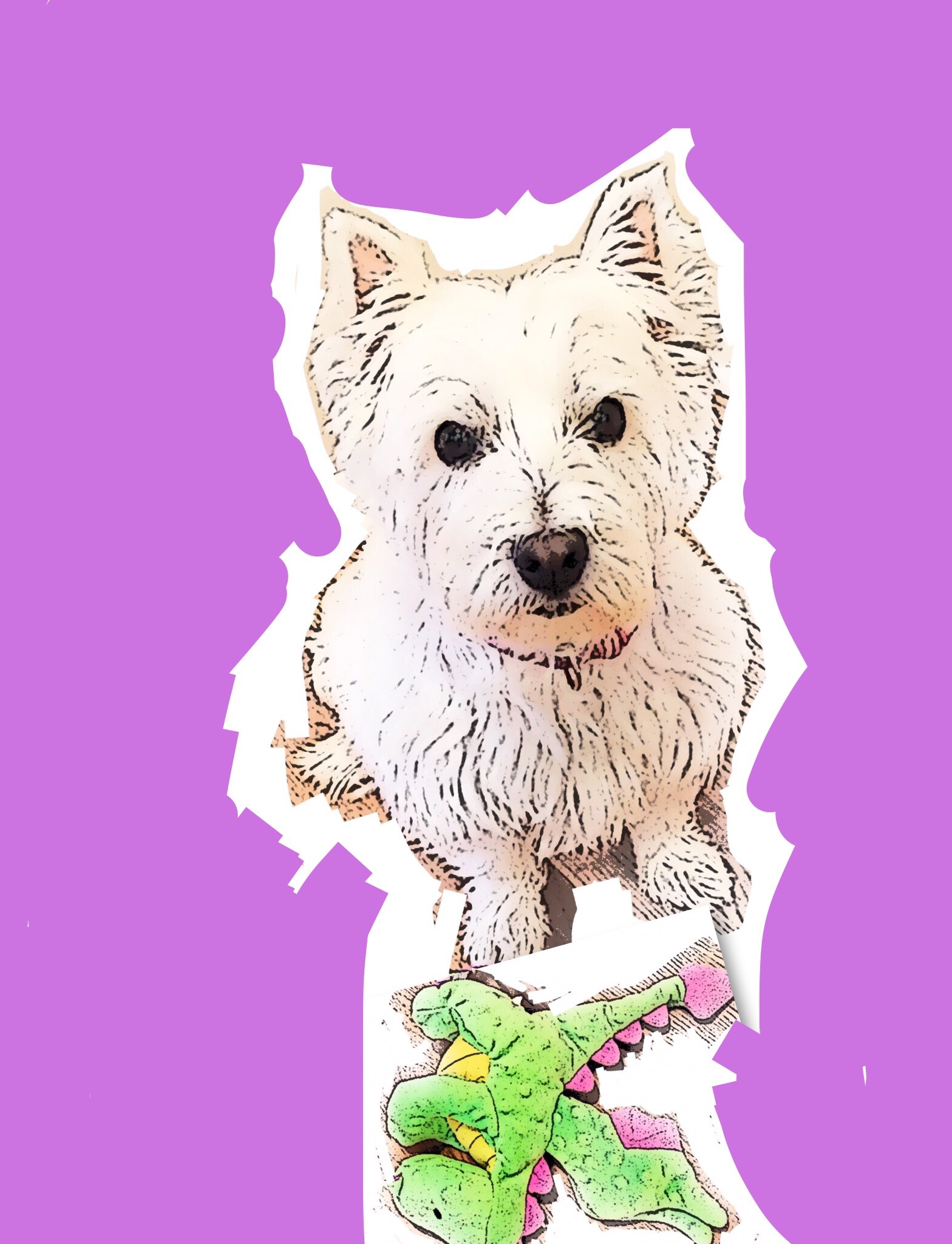 What a fun Christmas gift to create to a friend’s daughter! I went for lots of different textures (which do not really show up in the photo) to compensate for a Westie’s monochromatic look…the different thread weights were perfect.