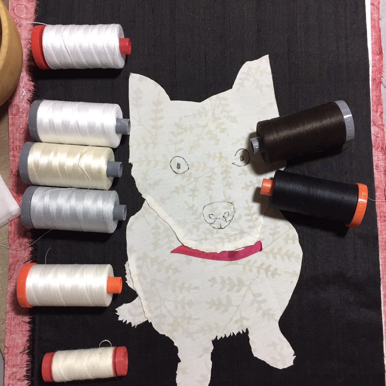 Positioning this cutie on the background sandwich, it was now time for thread selection! Who knew there were so many near-whites?
