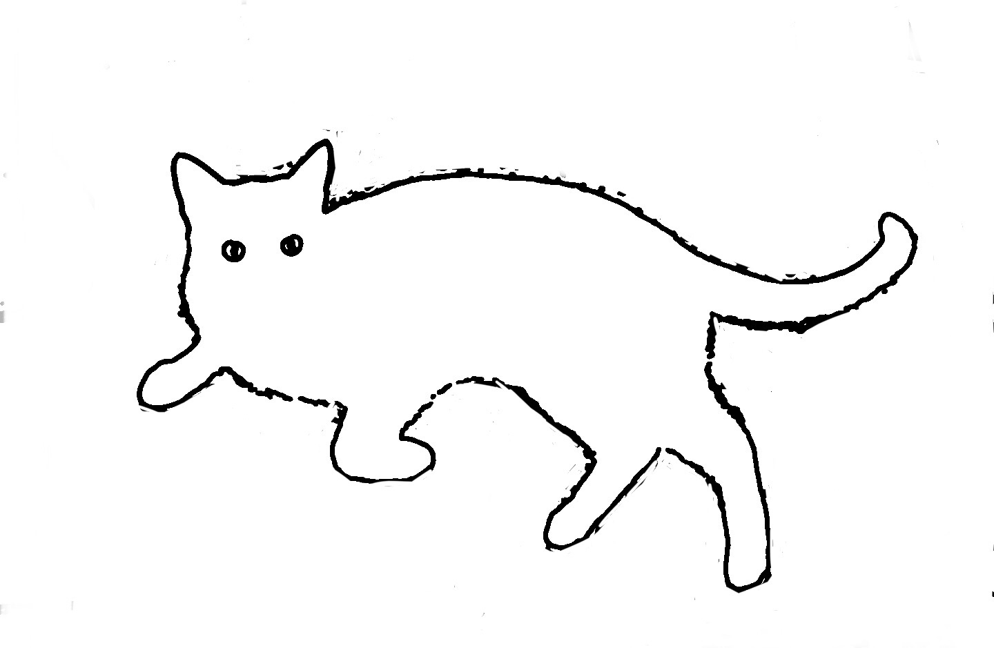 Next, decision : house or apartment building? I did use a ruler for these shapes…then put it aside for tree trunks, flowers, suns and moons, and so on. Since these pieces are MY interpretation of home, each must include a cat … photos of my black cat provides the perfect traceable outline :)…provided below in case you’d like to use it.