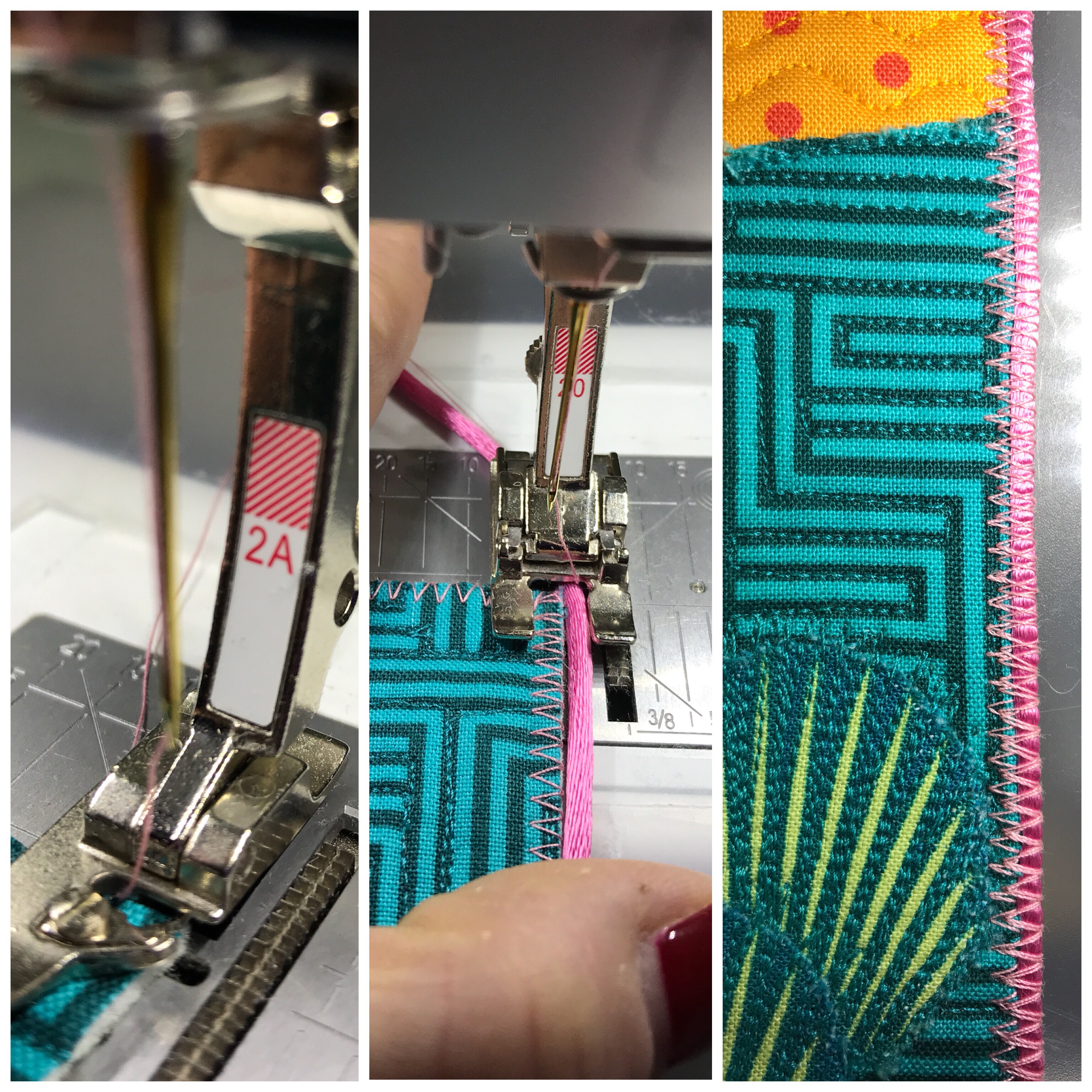 To finish, I stitched a zigzag edge, then stitched some inexpensive piping that matched the thread to give the pieces a more finished look.