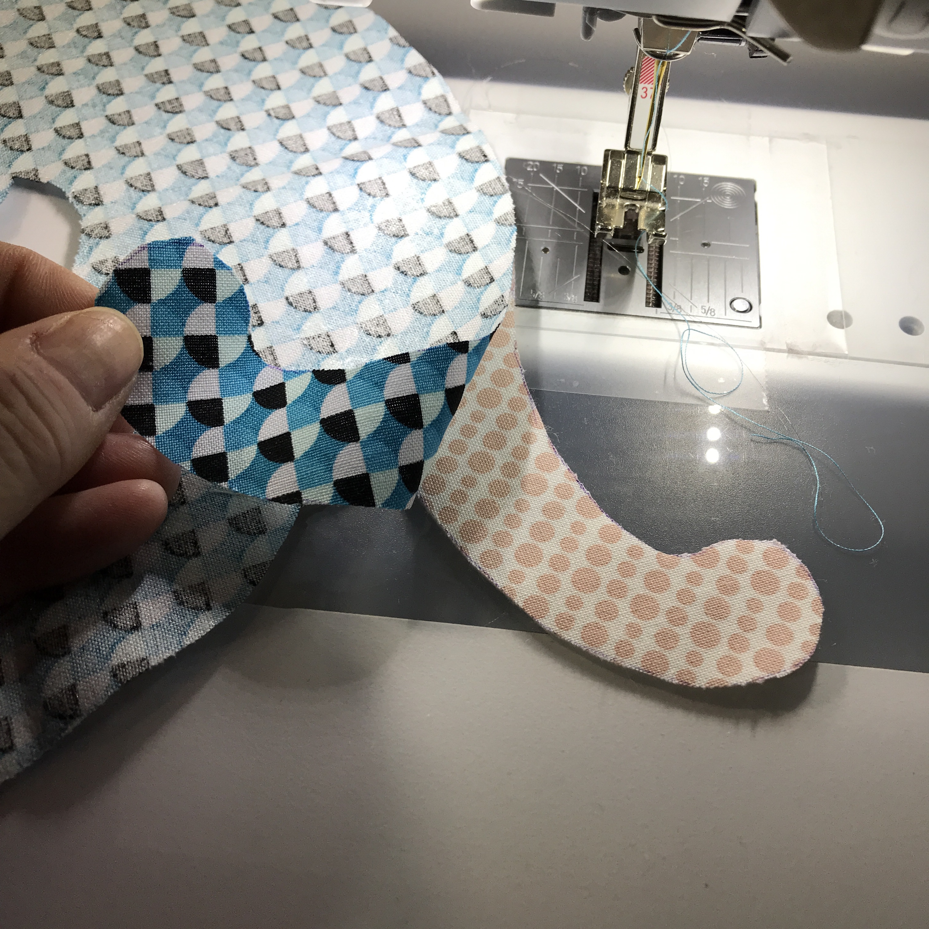 And traced a reverse image onto another Uppercase fabric. And decided to try stitching right sides together before stuffing…