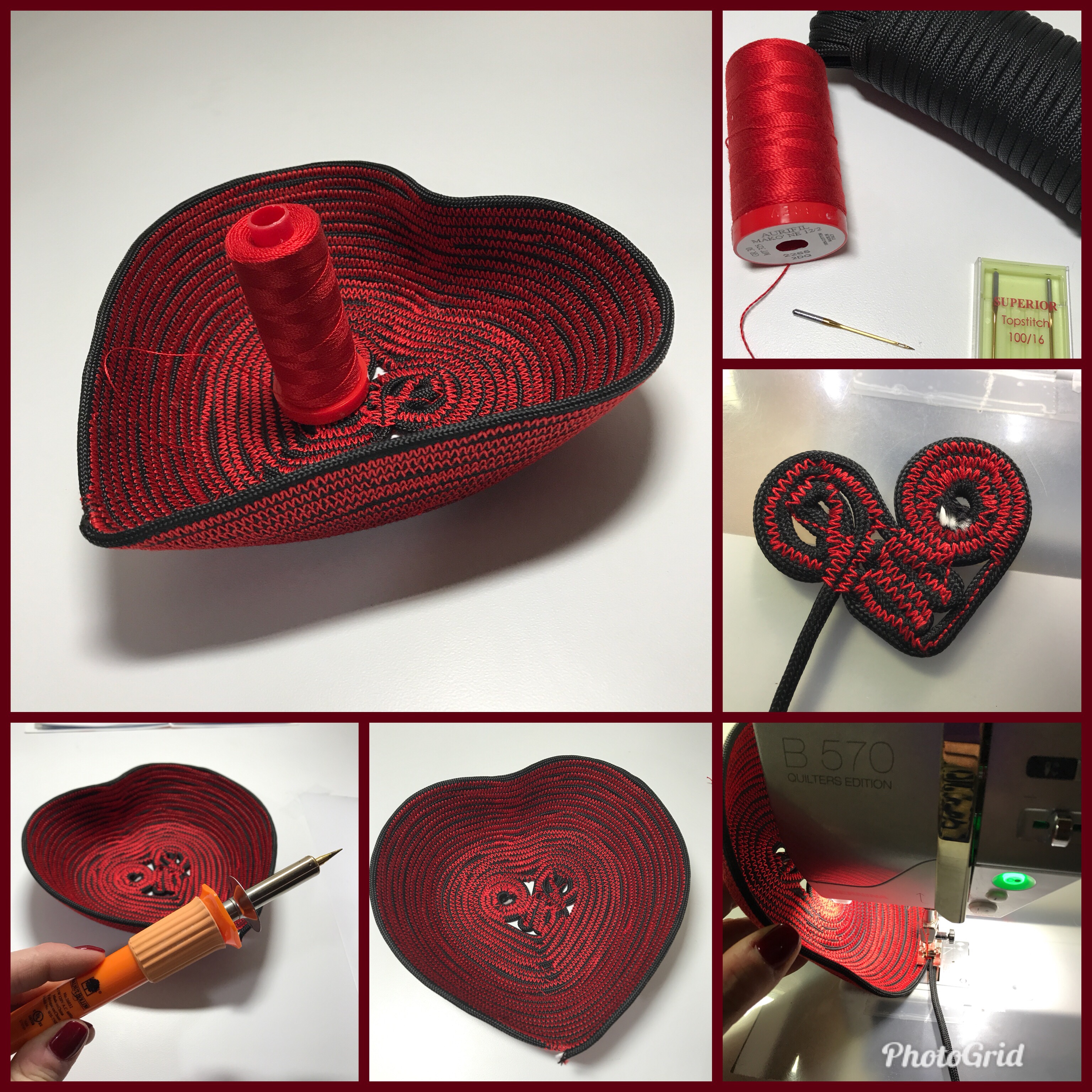 Bowls are one of my favorite non-quilt projects! One year I decided to try a heart-shaped bowl for my Sweetie in a high-impact red/black combination.