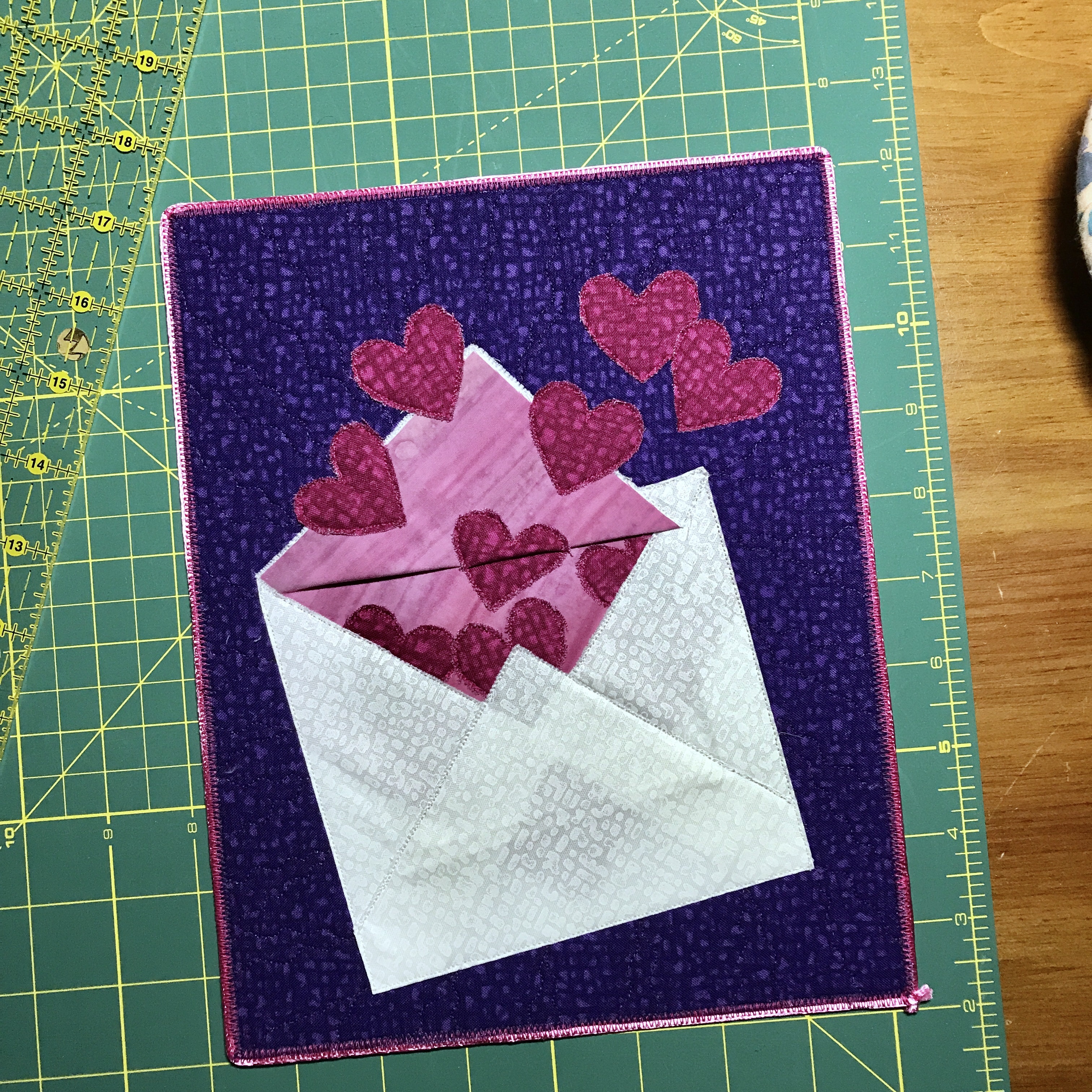 Hearts a-flutter for your Valentine? Create a love “note” from fabric, in which little hearts appear to float up out of the envelope!