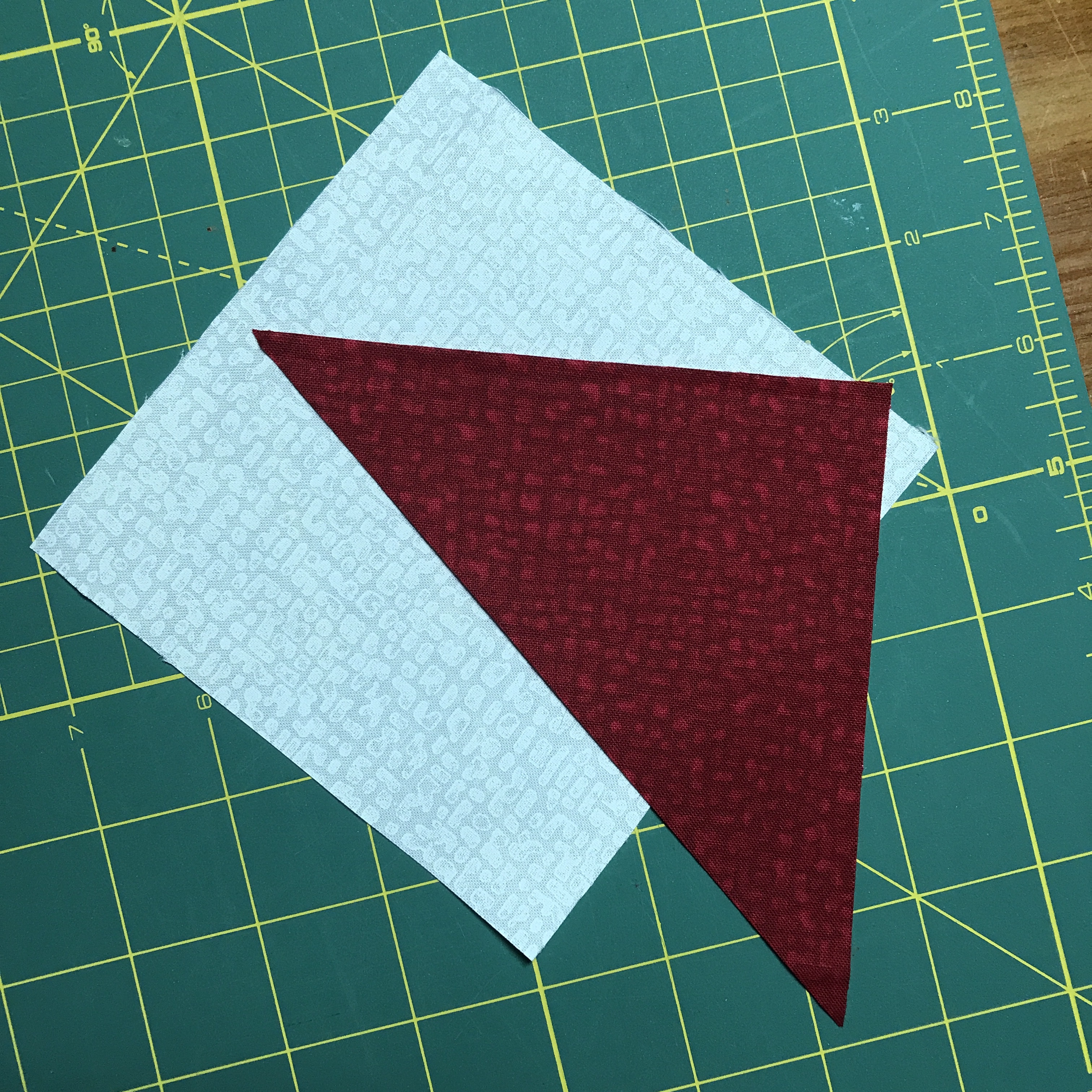 First, bisect one square…a half square triangle to complement the square! Fold the triangle in half…