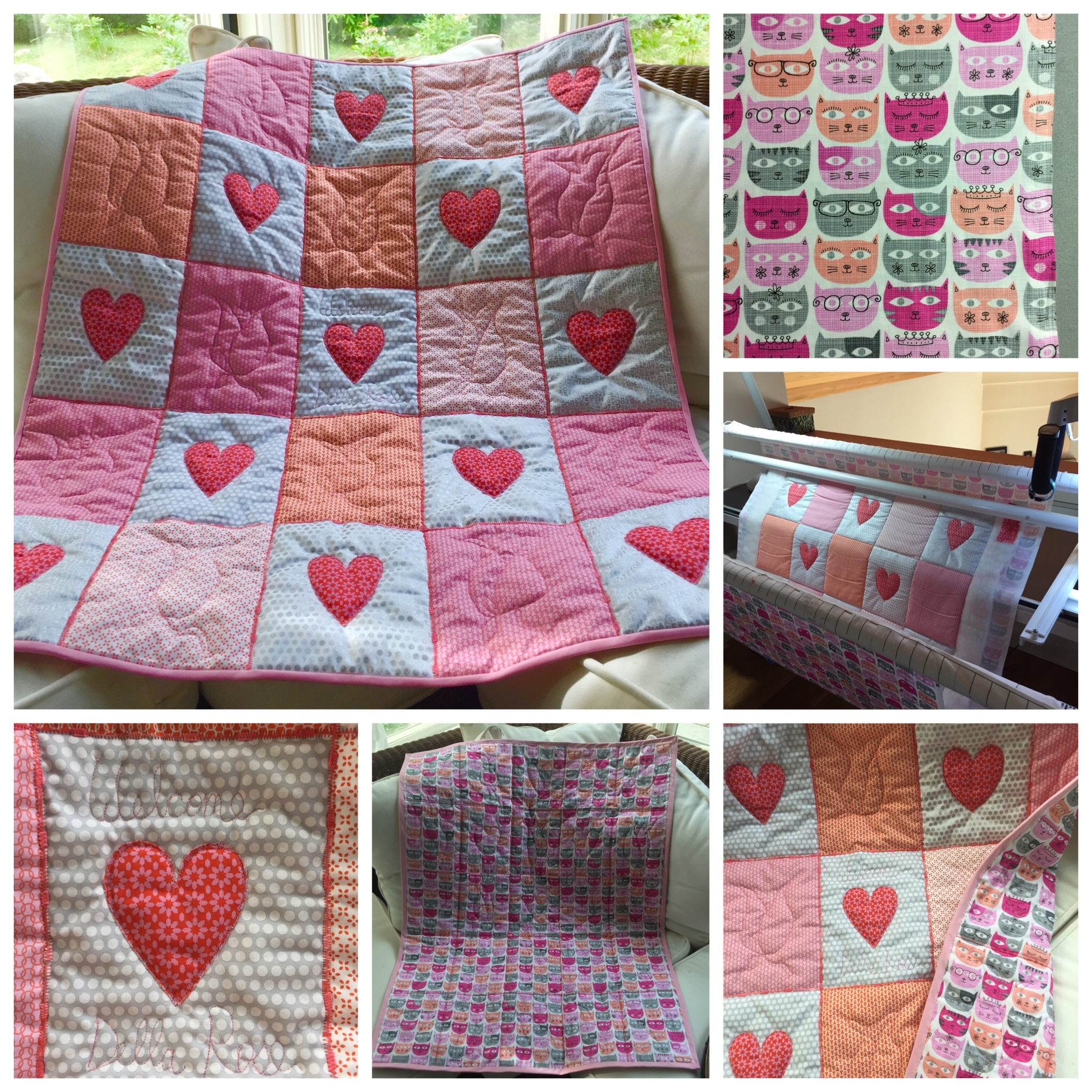 Or…depending upon the fabrics…you may want to fuse the hearts to alternating squares as I did in this quilt (using Uppercase Volume 1 fabrics 💕) for a VERY special baby 💜: