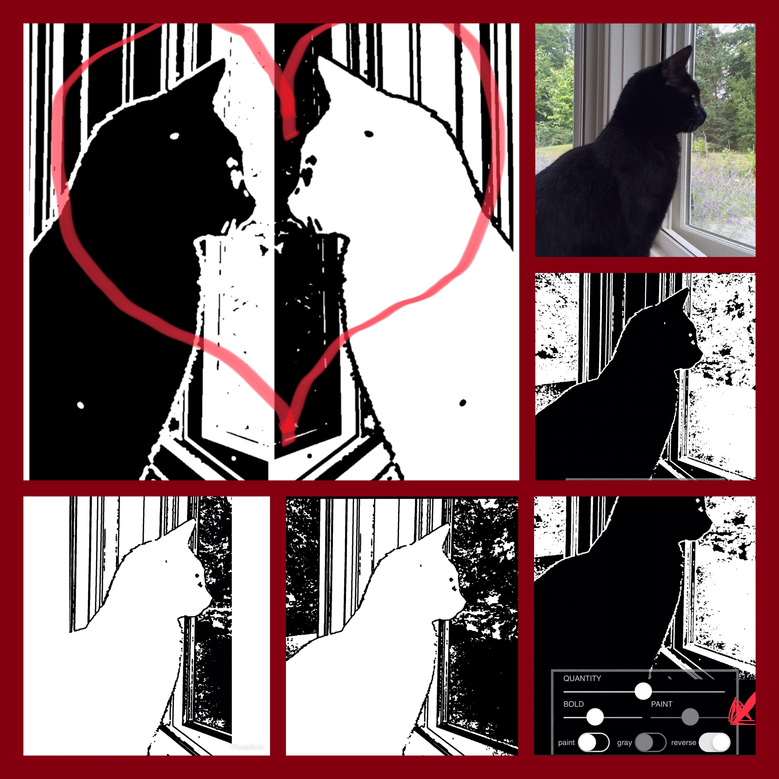 2-run it through the app…it generates that black cat against the white background. Save that image.