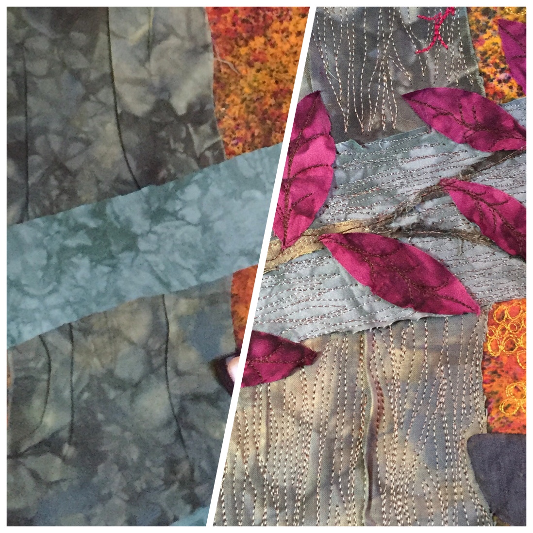 Background quilting was a delight in this piece, switching thread colors to augment the fabric and adding even more texture.