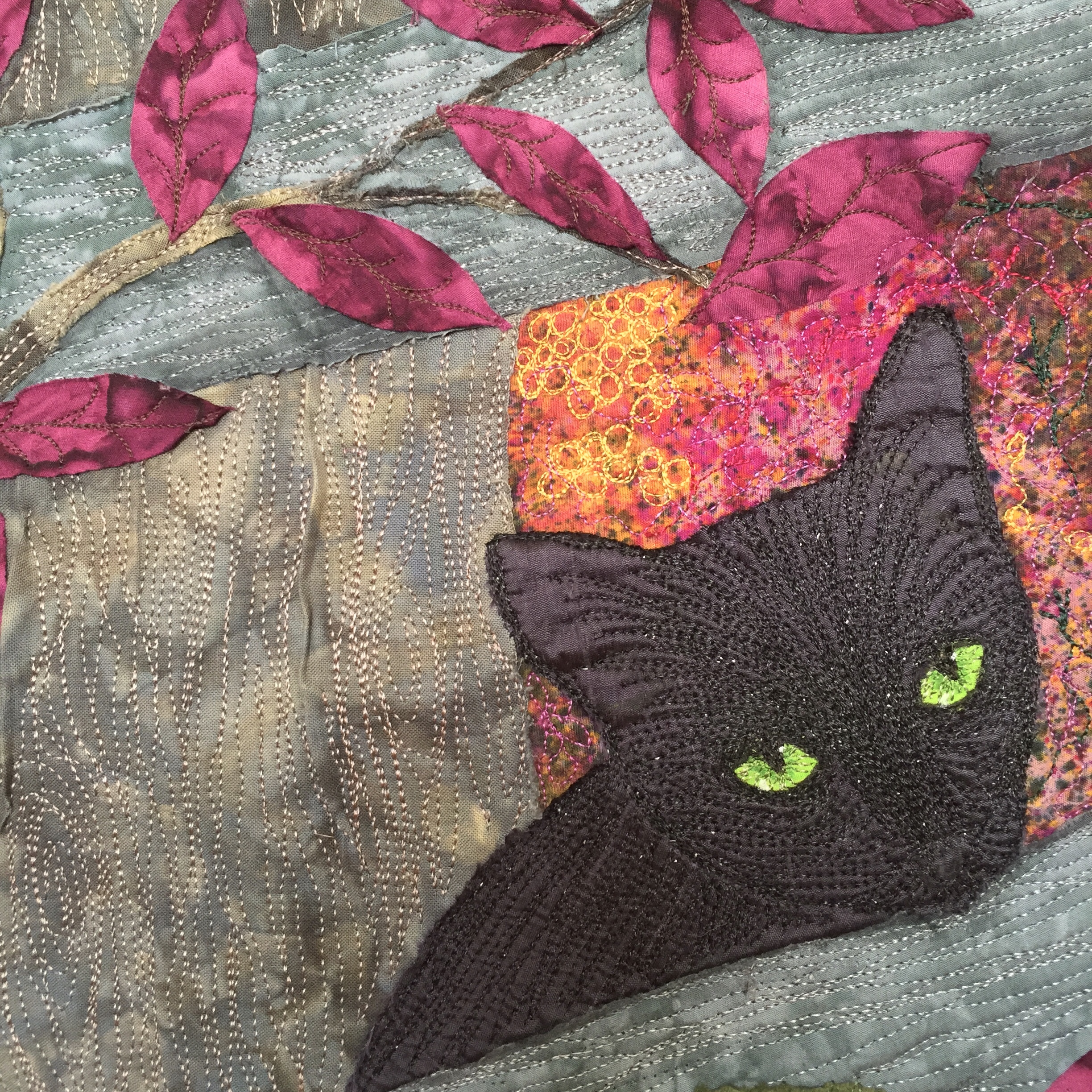 My feline companion needed black metallic thread – one of many metallics from Superior threads that are as well-behaved as they are beautiful.