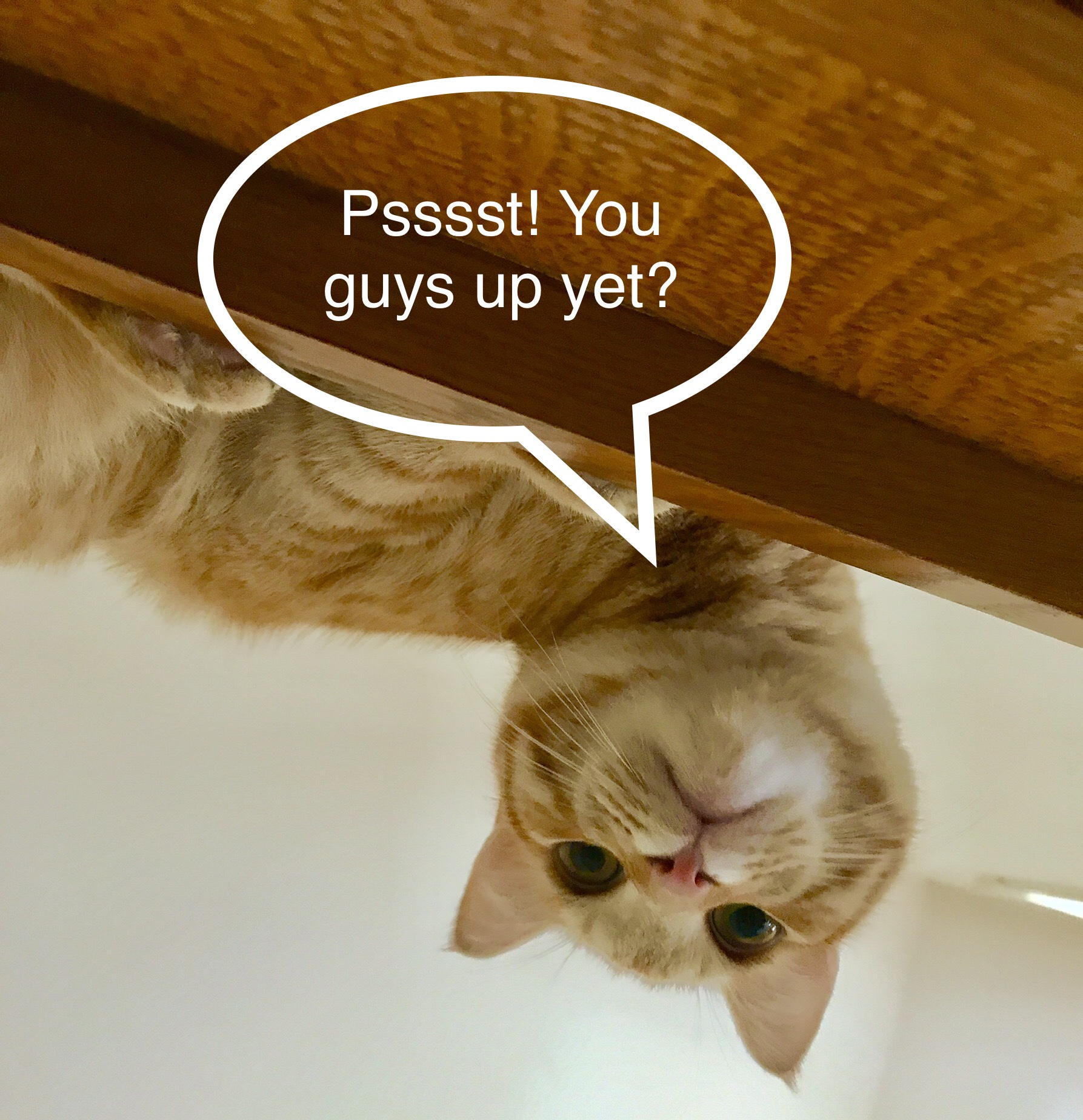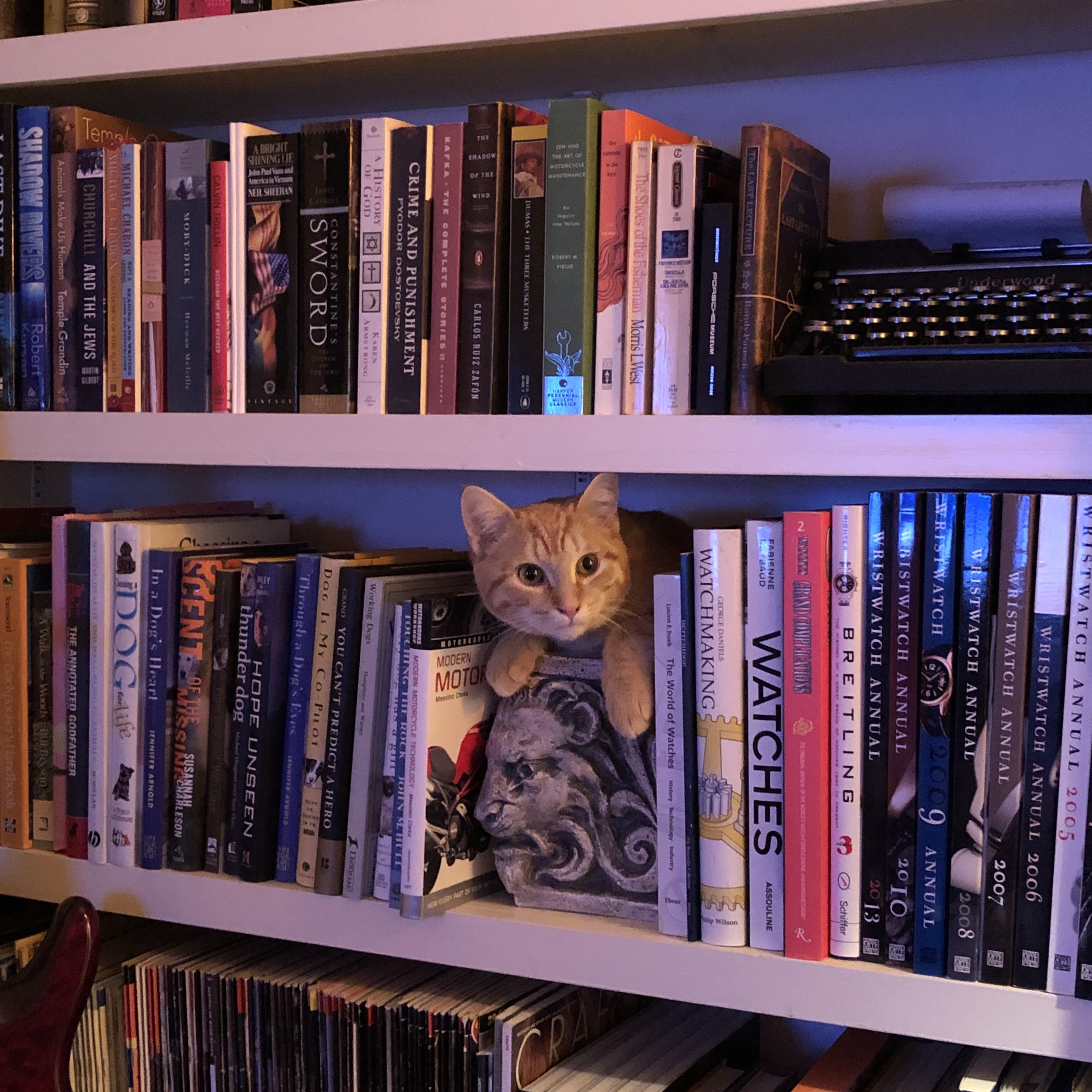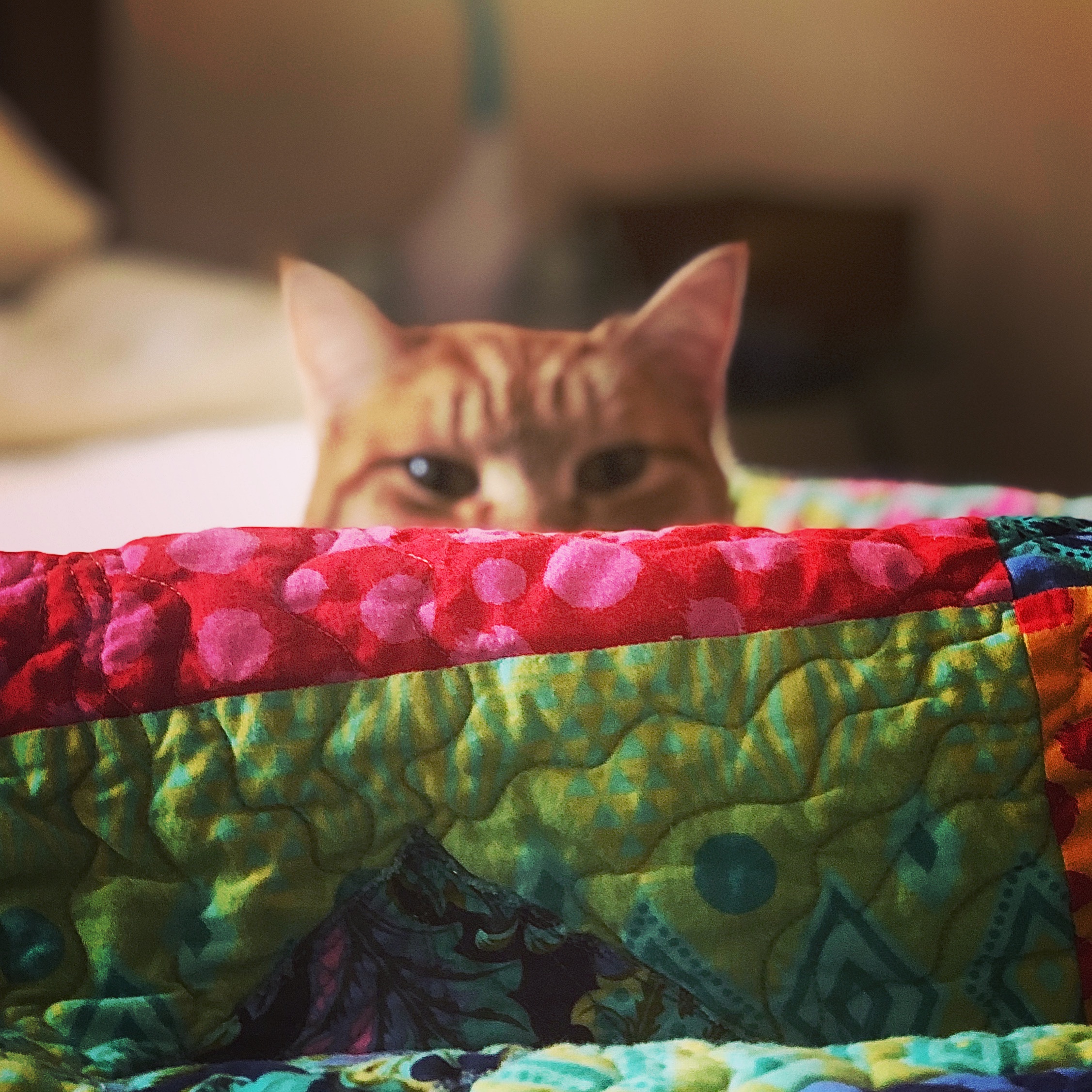 As any good cat does, he jumps into suitcases every time I try to pack, shelves as we put laundry away…and onto the headboard to try and wake oversleeping humans…