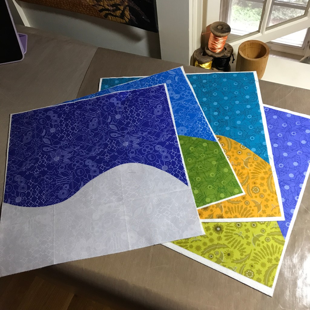 …then chose the “sky” and “ground” fabrics, creating the basic background…