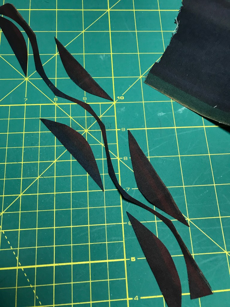 Since the background sky fabric is quite light, I needed to create the forest floor with lots of leaves…this method is a terrific time saver when you need a LOT of leaves: