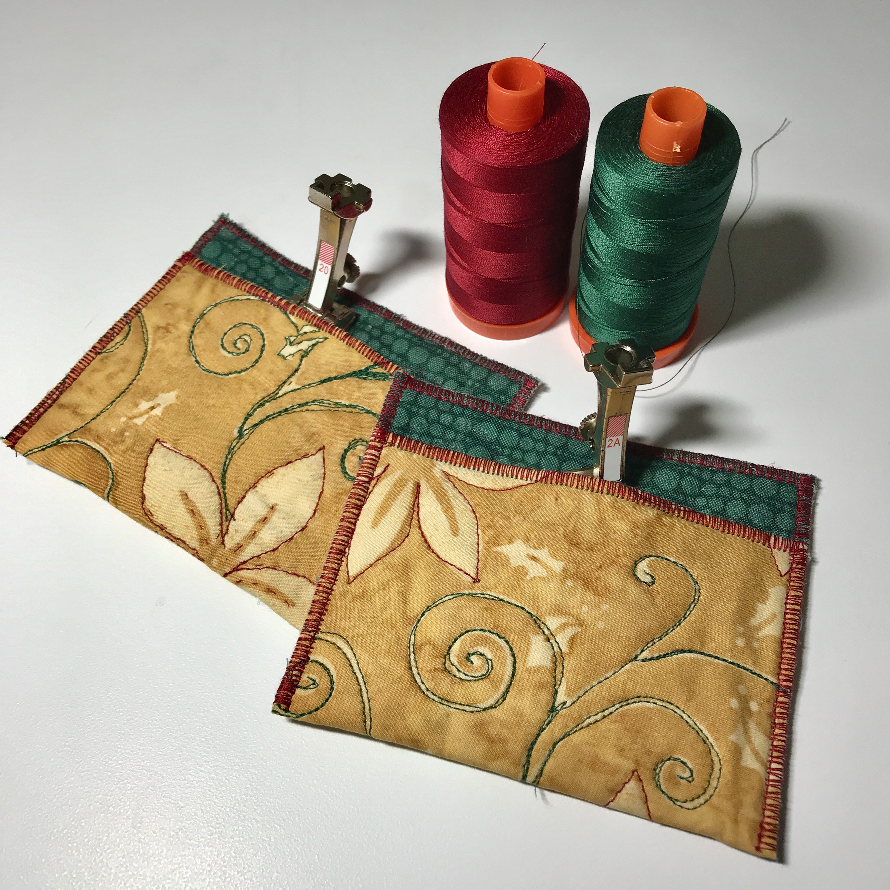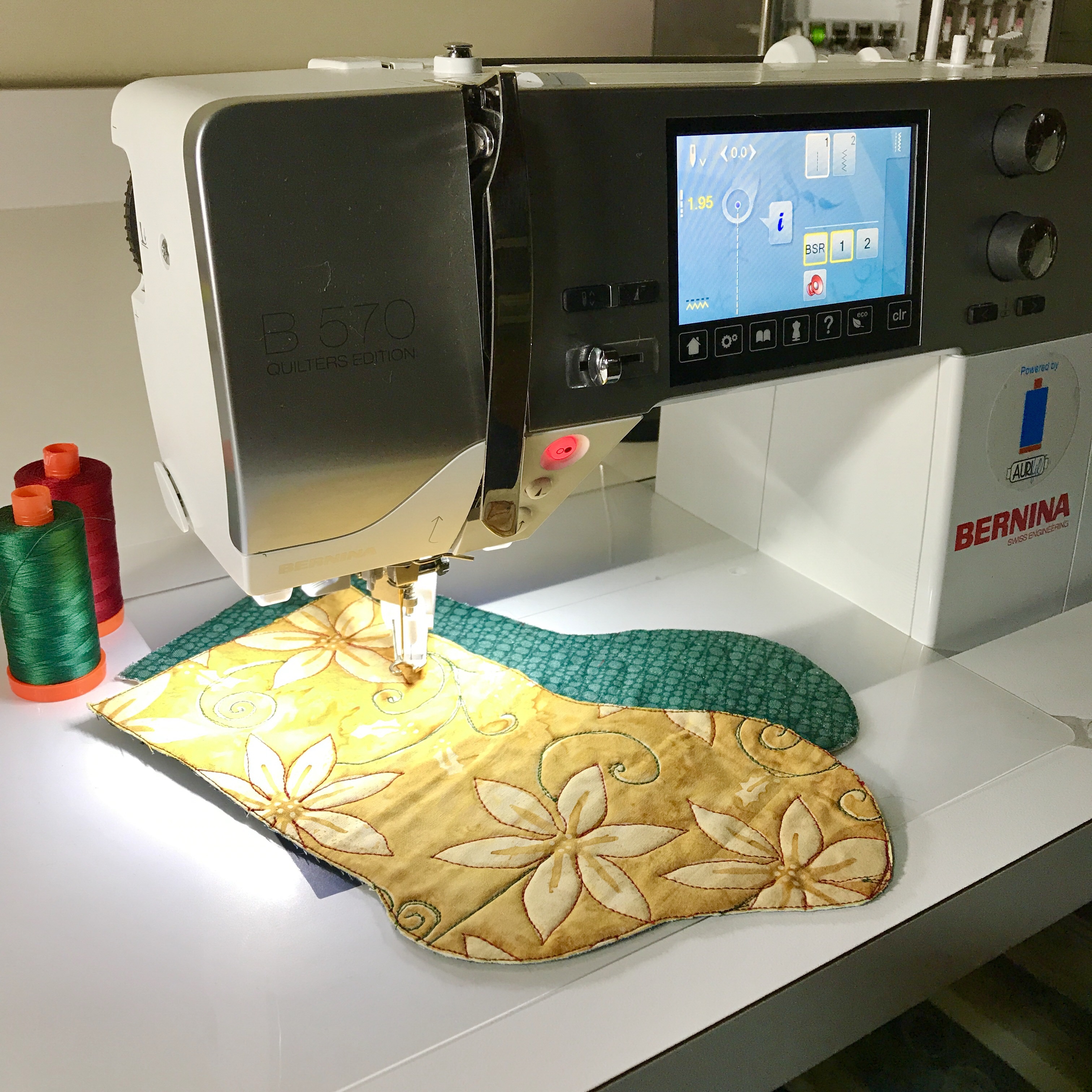 This kind of project is just pure fun and a terrific way to get some practice in with your BSR. I just zoomed around and stitched stems in green and the outline of poinsettia petals in red.