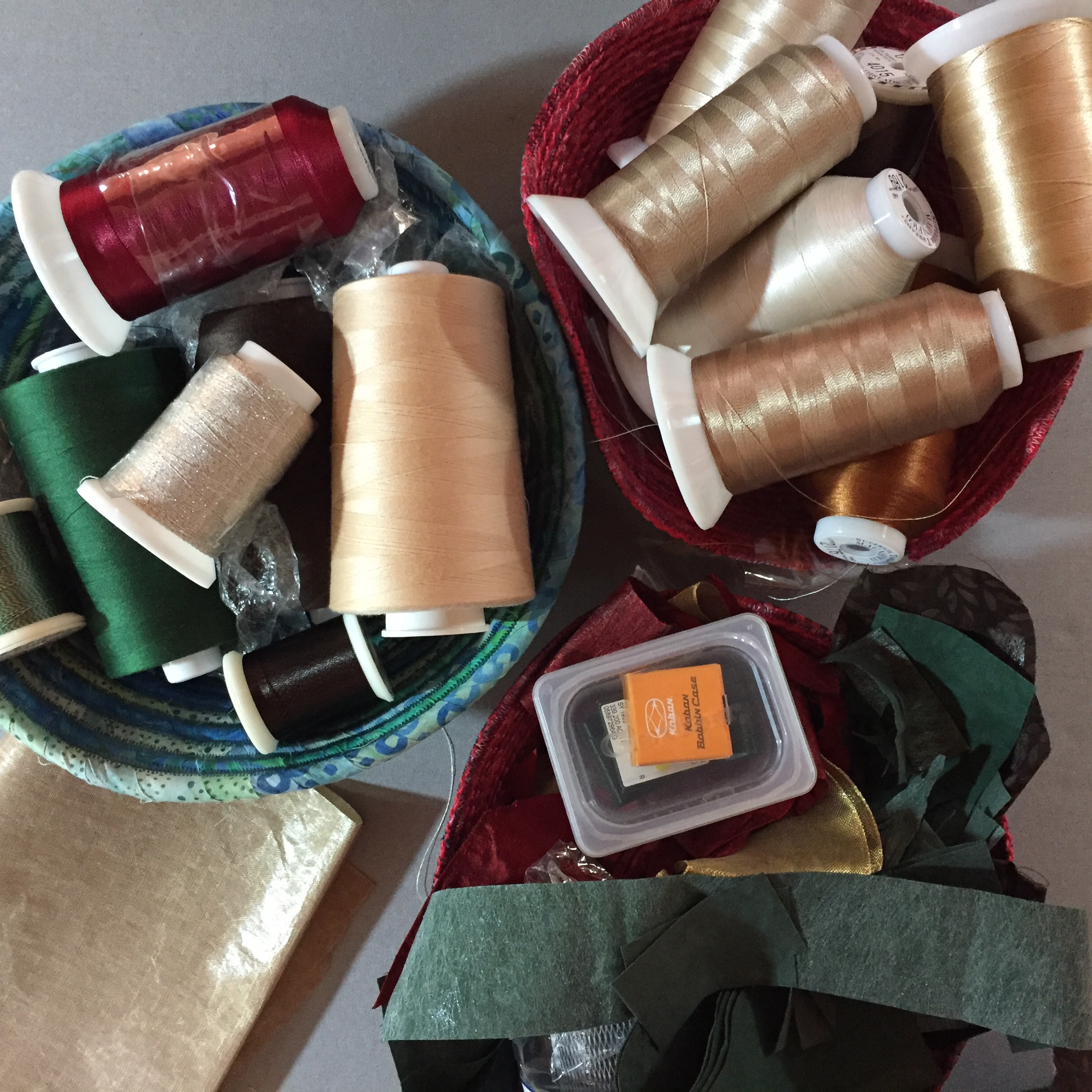It was great fun to bunch up and wrinkle the red silk to simulate the folds of the actual tree skirt. I think of it as sculpting fabric!