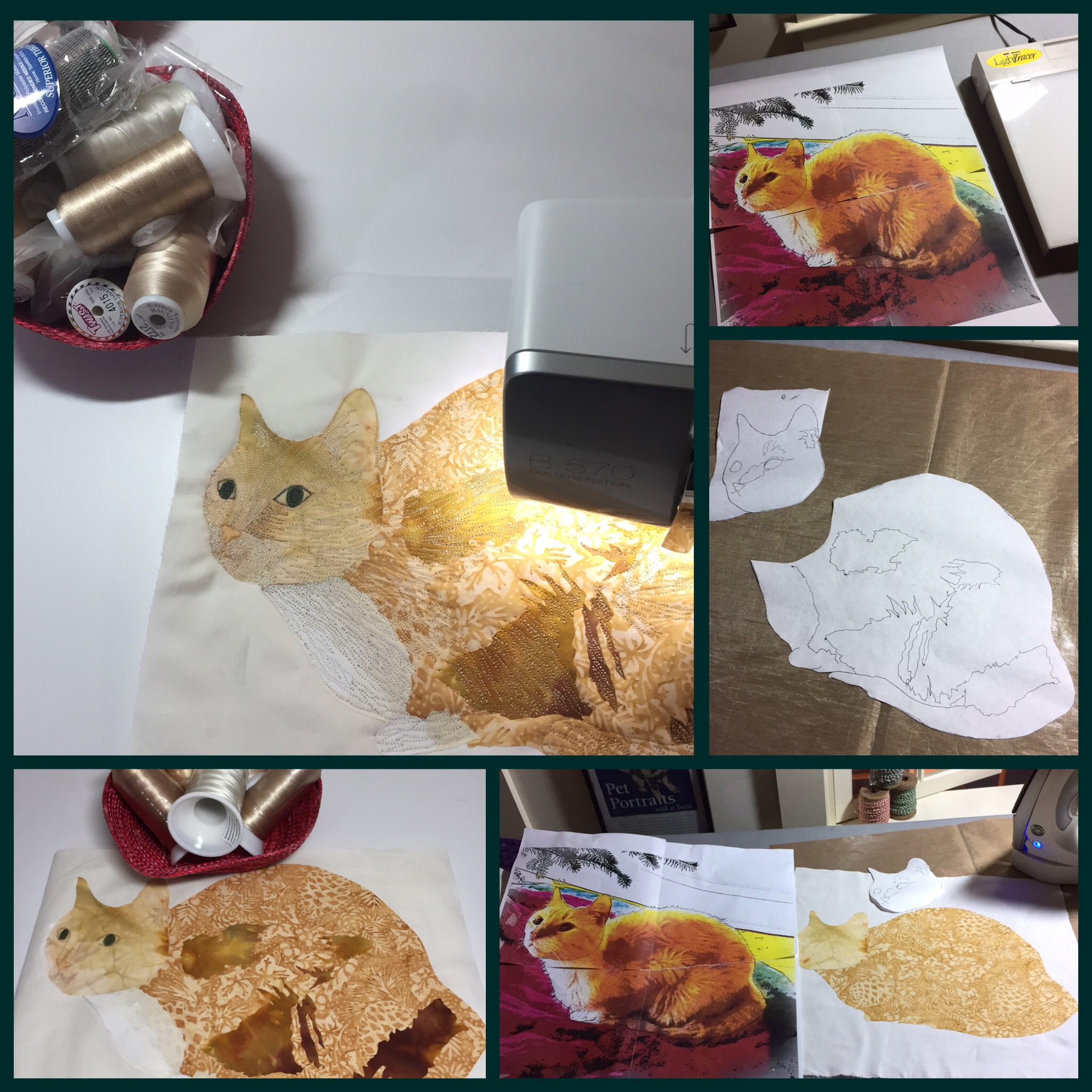 I decided to construct Jesse first, with a layer of wool batting, on my Bernina, and then add him to the quilt with light stitching (trying to preserve a 3-dimensional effect).