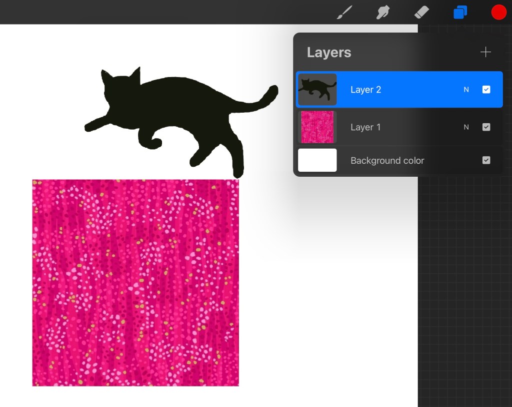 Now, open Layer 2, and copy/paste the shape you would like to assign to this color. Note, the shape must be filled in! If you try to do this with a line drawing, all it will clip is…yup, a line drawing.