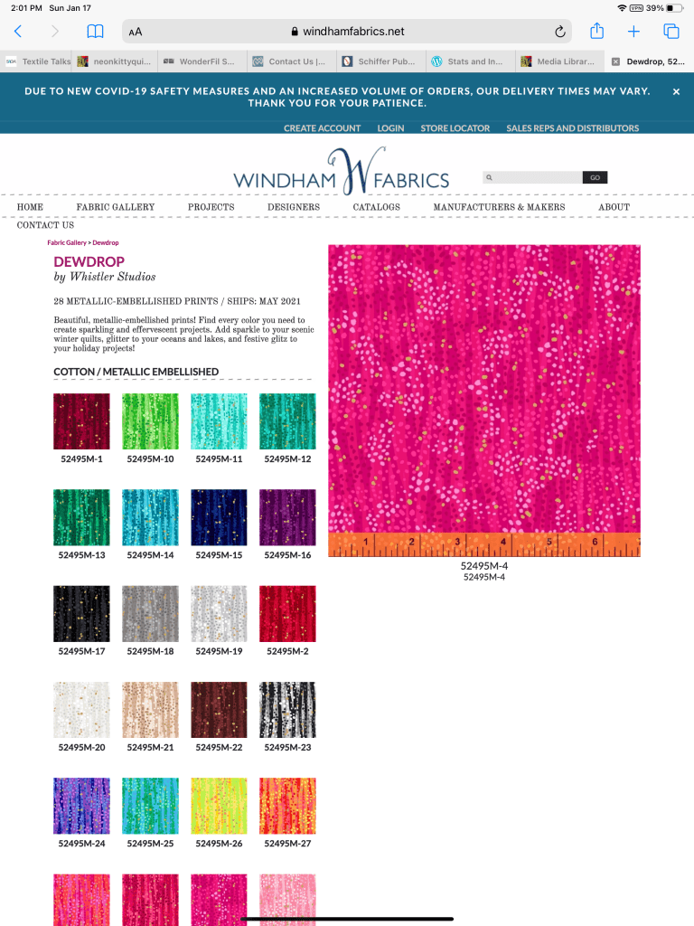 First step – take a screen shot of the fabric collection from the company’s website and save it as a photo…here, Windham Fabrics’ “Dew Drop” collection: