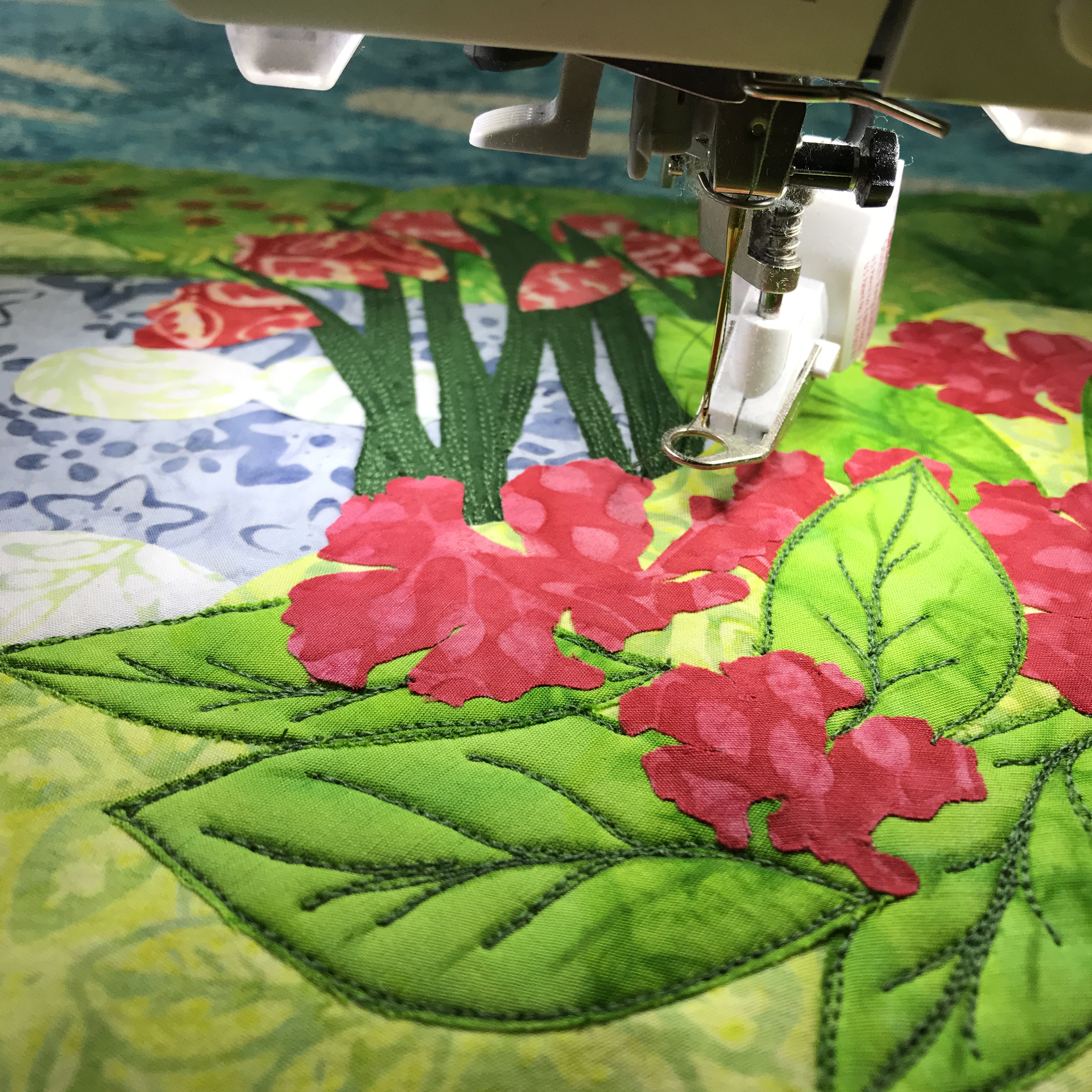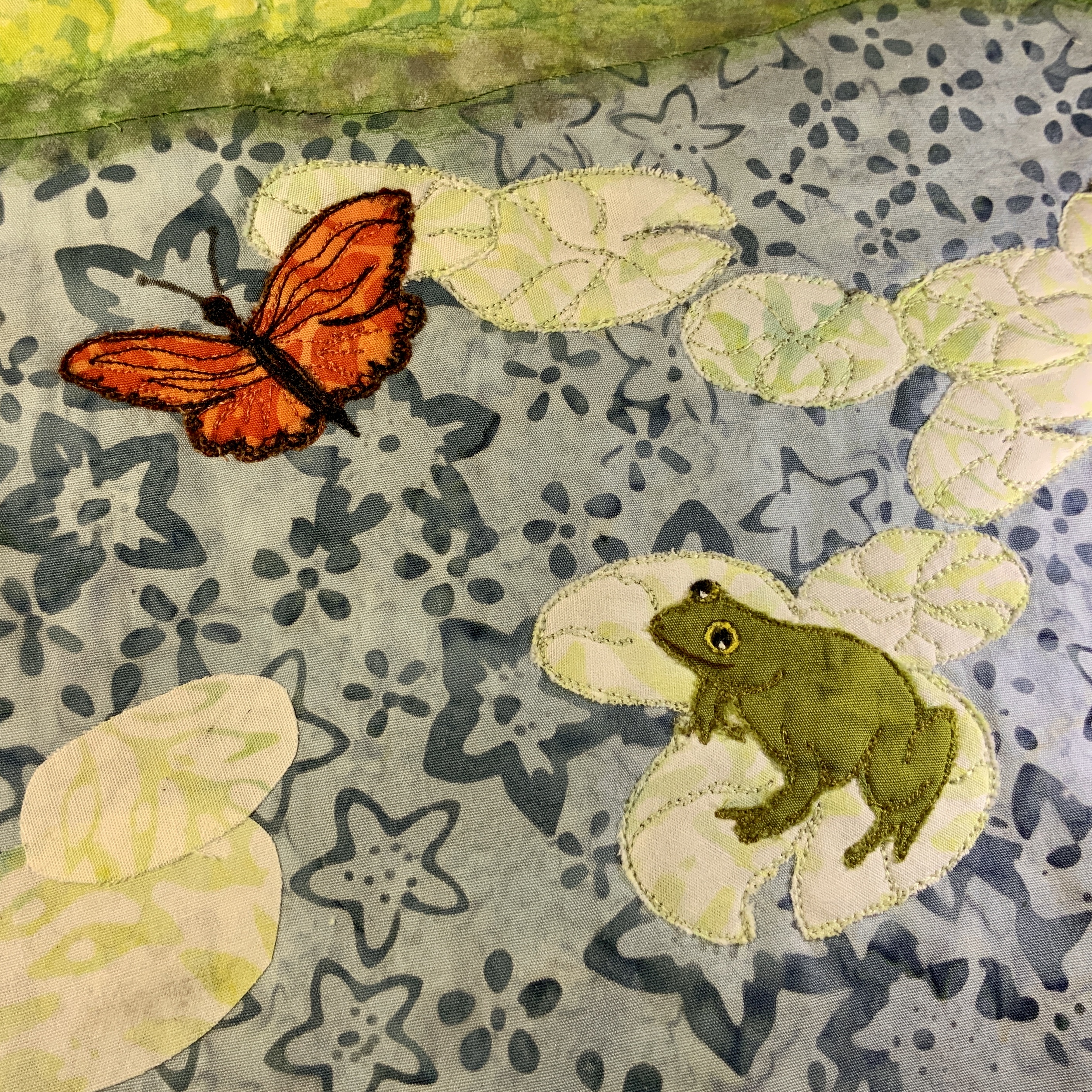 Nature is a constant source of inspiration for my fiber art! Working in raw-edge fused appliqué and (often dense) free-motion quilting is, quite simply, pure joy. Having never taken an art class, my creative practice was fueled by the advent of smart phones and tablets, which enable one to interpret a photo in colorful and tactile ways.