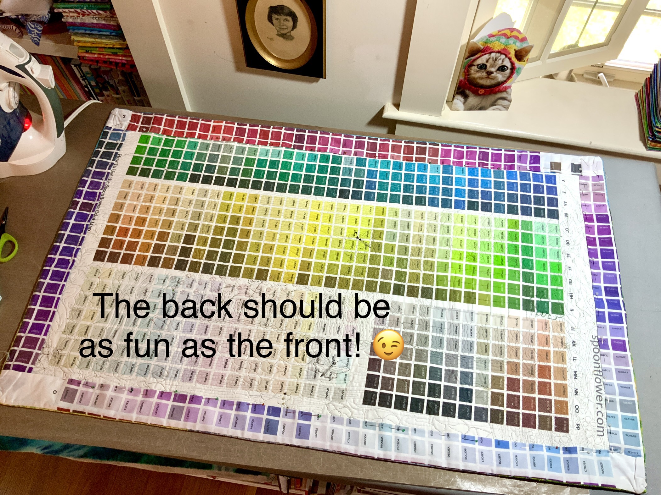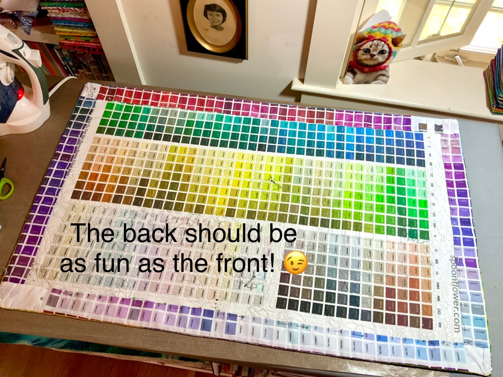 Because the back of your quilt should be as much fun as the front, I used Spoonflower’s marvelous print of their color chart for the backing: