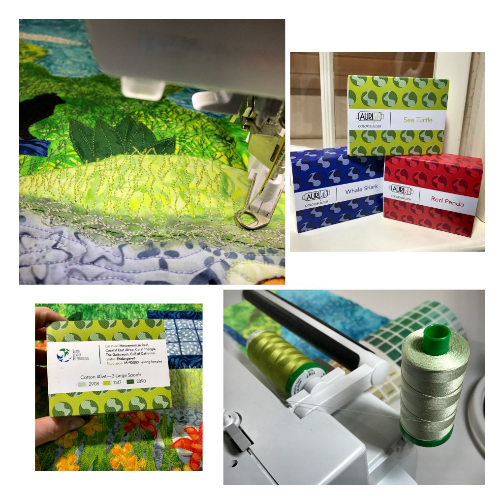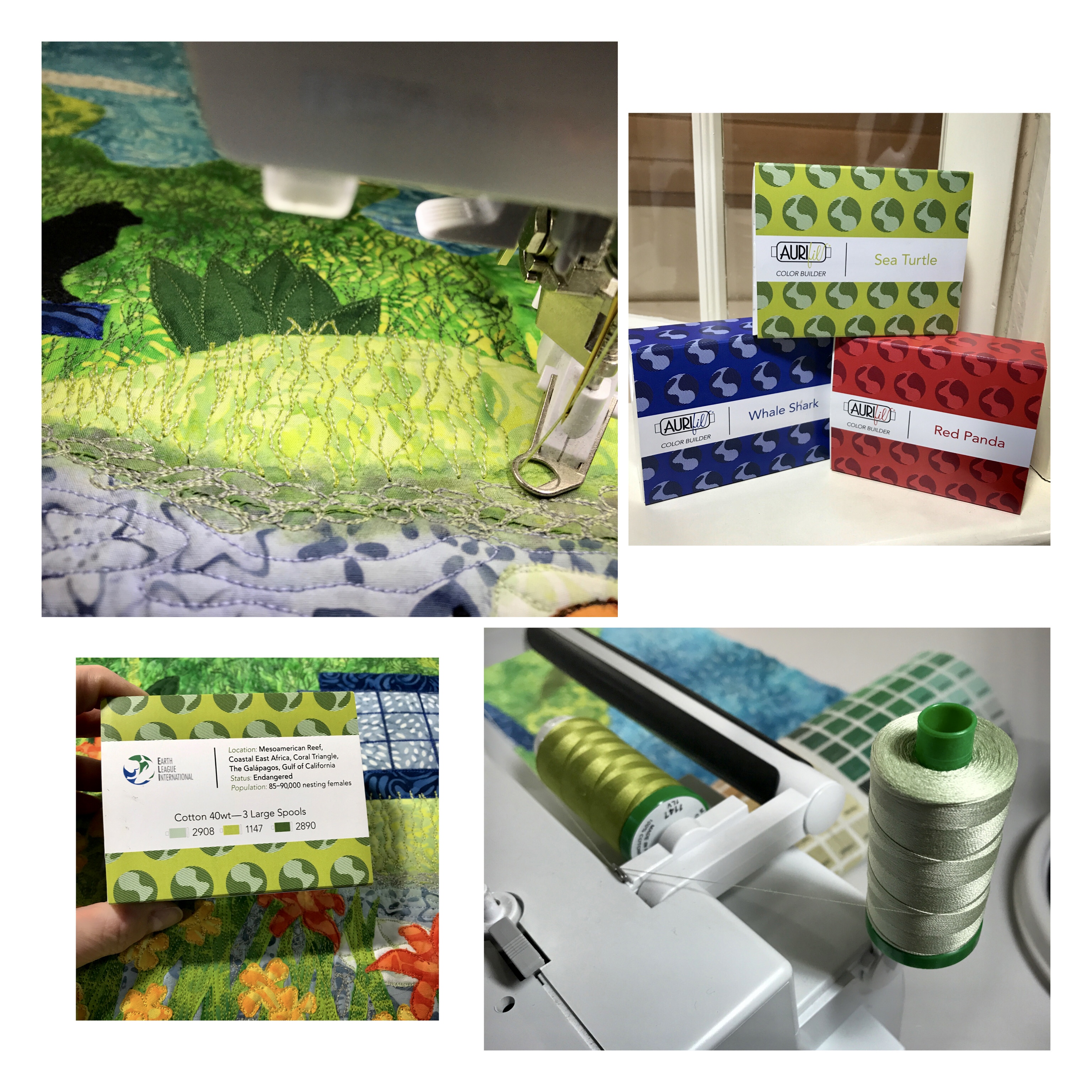 - Thread selection is nearly as important as fabric – it is an excellent idea to select a palette of threads for your scene before you begin. I used Aurifil’s 2021 Color Builders in 40wt, which added a bit more texture than my usual 50wt. https://www.aurifil.com/2021-color-builders (So that I don’t lose my mind, I keep monofilament in my bobbin – a big help when you are changing top thread colors frequently.) Don’t forget that sometimes the best thread color is 2 colors together, if your machine has a second spool pin. Blend threads the way painters blend their paints!