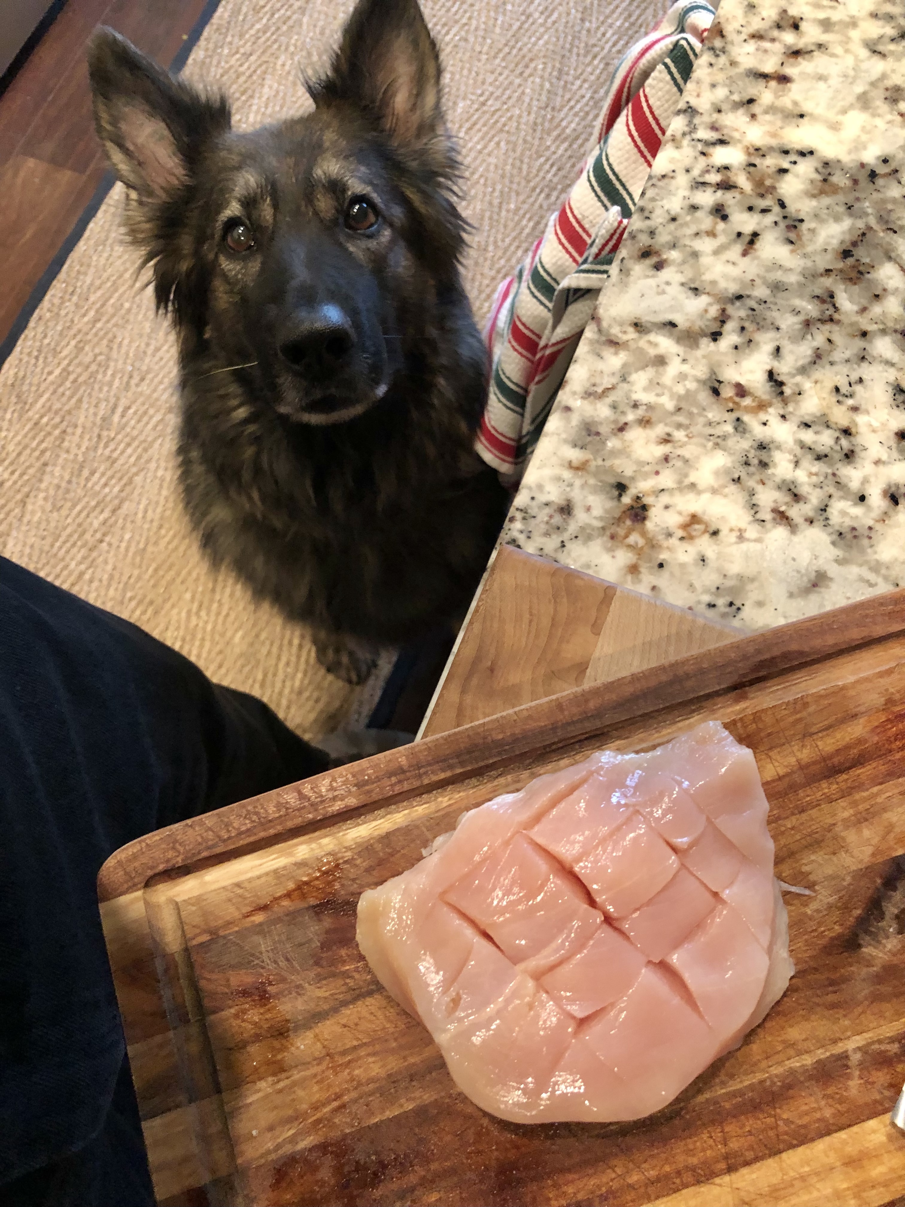 That look of adoration may have had something to do with the chicken breast 😆, but it worked! Cropping it to focus on her face…