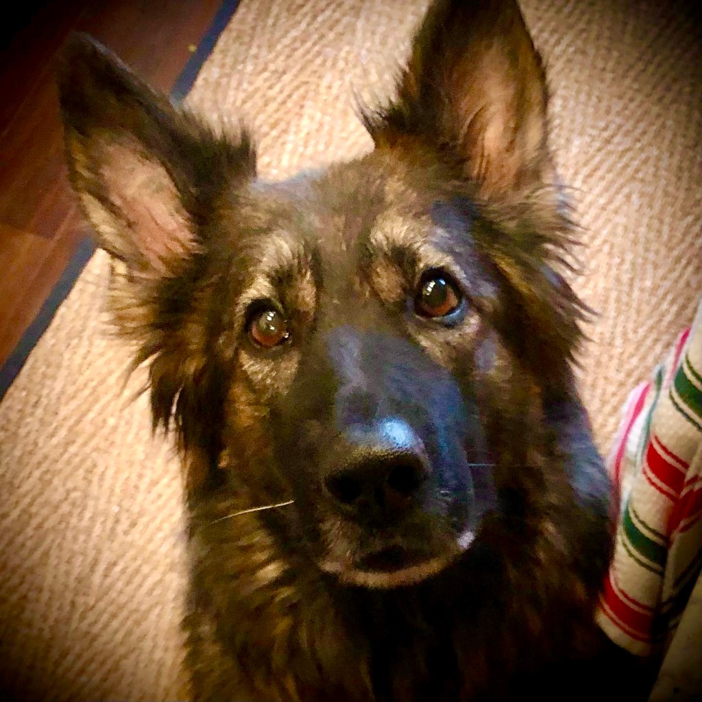 As Valentine’s Day approached, I had the joyful task of creating a valentine for my sweetie…what better inspiration than the sweet face of the new member of our family? After the heartbreak of losing Kane last summer, we were fortunate to bring this very beautiful girl into our family (OK, I’ll admit it, I’m biased).