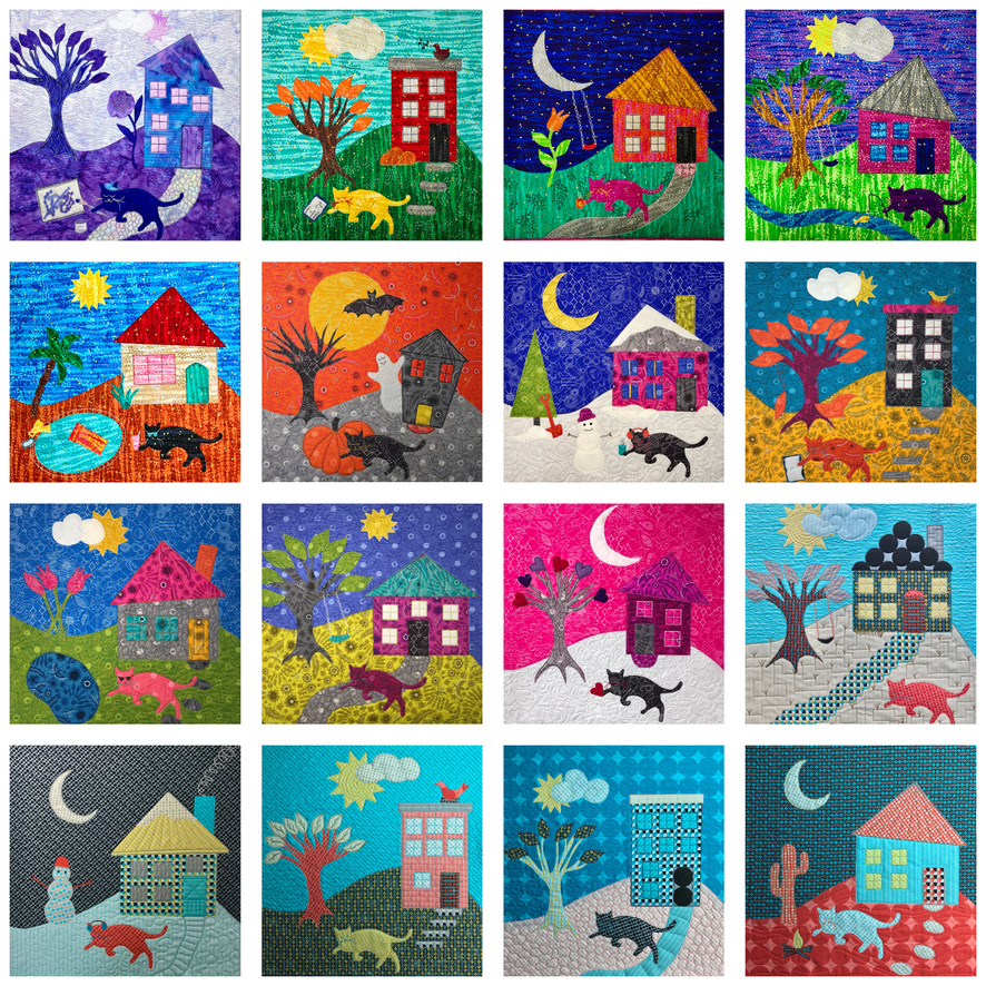 And…an ongoing series of Jackson’s House Quilts (14″ whimsical studies) 😉